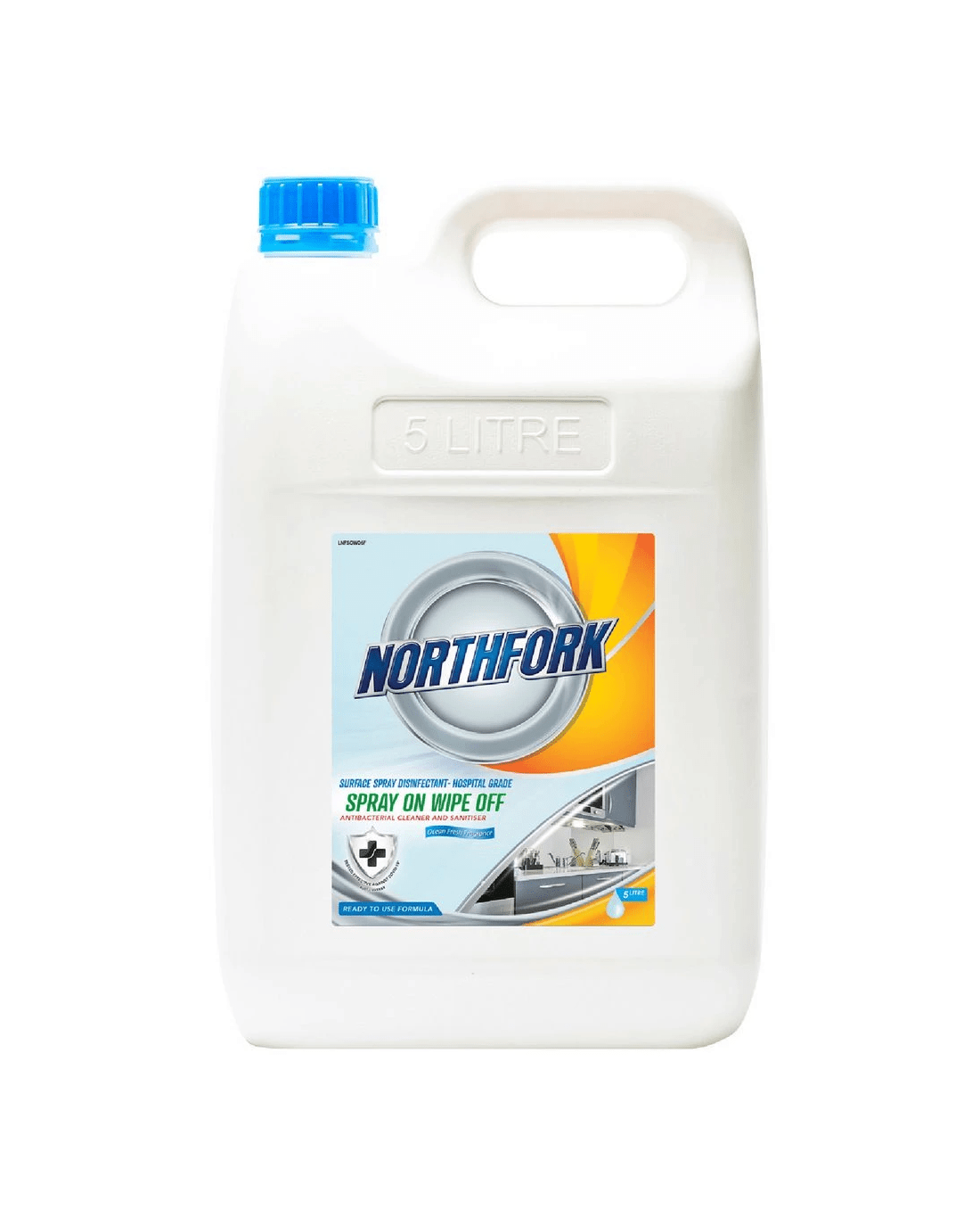 Northfork Spray On Wipe Off Surface Cleaner comes ready to use with no dilution required so you can easily clean benches, tables, walls and almost any other hard surface. It has an ocean fresh fragrance which keeps your home, workspace or kitchen smelling pleasant. Northfork Surface Spray Disinfectant Hospital Grade Spray On Wipe Off is an easy, ready to use formula that is effective against COVID-19 virus (SARS-CoV-2) and eliminates odour causing germs on hard surfaces.