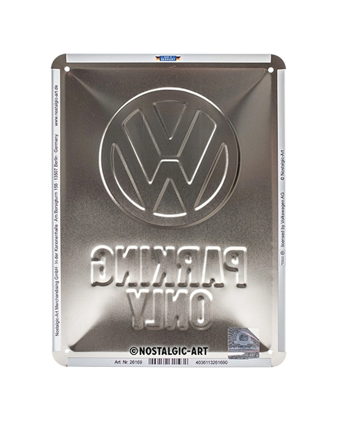 The Nostalgic Art Small Sign VW Parking Only is designed for adding a vintage touch to your home, office, or caf. Crafted from high-quality German-made steel, this durable sign is built to withstand outdoor conditions and last for years.