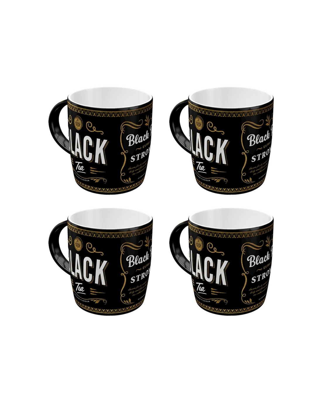 Nostalgic-Art 4PK Ceramic Mug 330ml Retro Design - Black Tea - Black