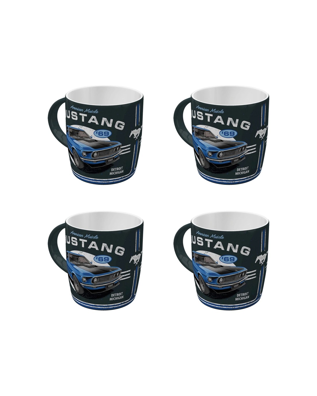 Nostalgic-Art 4PK Ceramic Mug 330ml Retro Design - Ford Mustang 1969 Mach 1 Blue - Blue