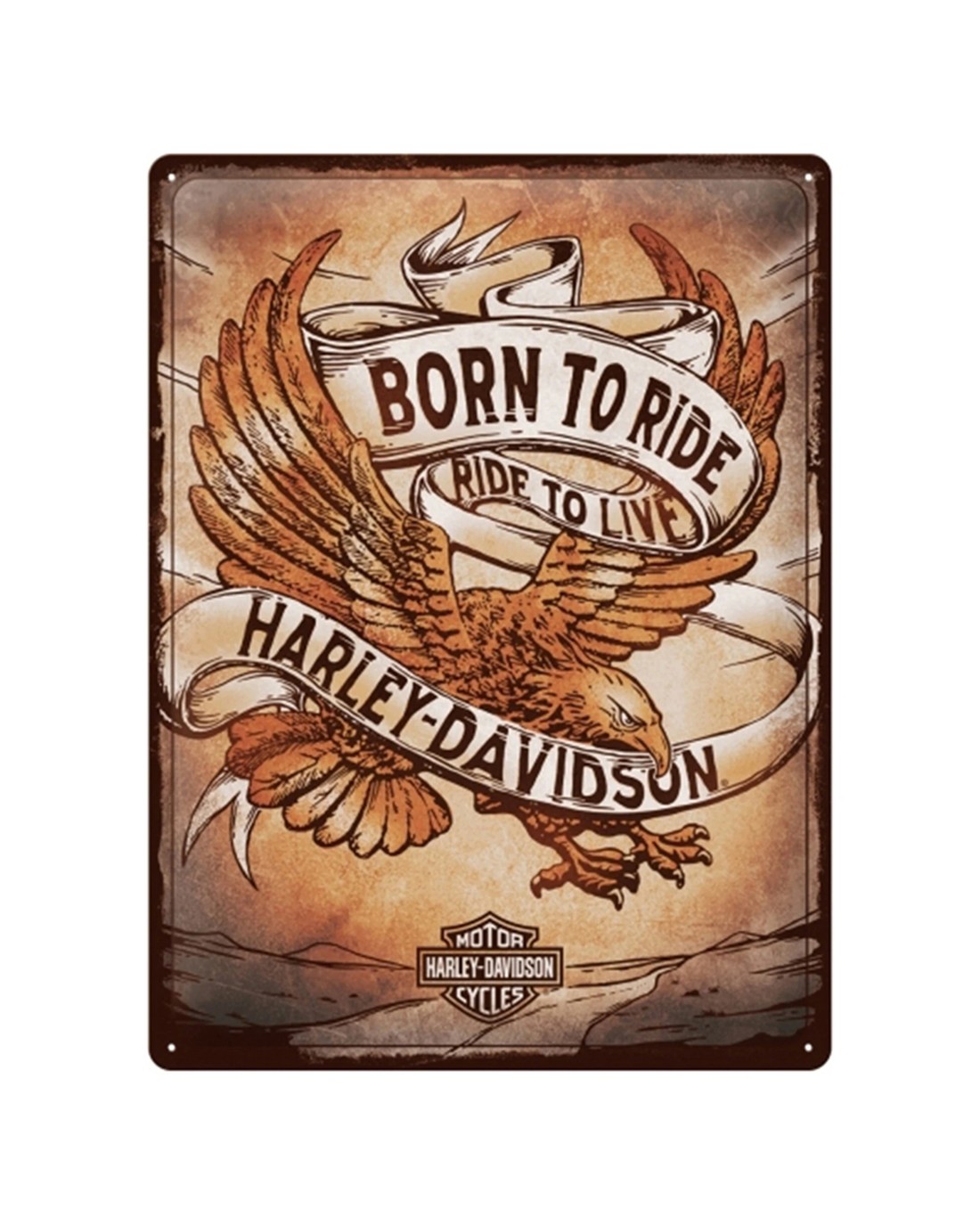 Nostalgic-Art Large 30x40cm Metal Wall Art Sign Plaque - Harley Born To Ride Eagle - Natural