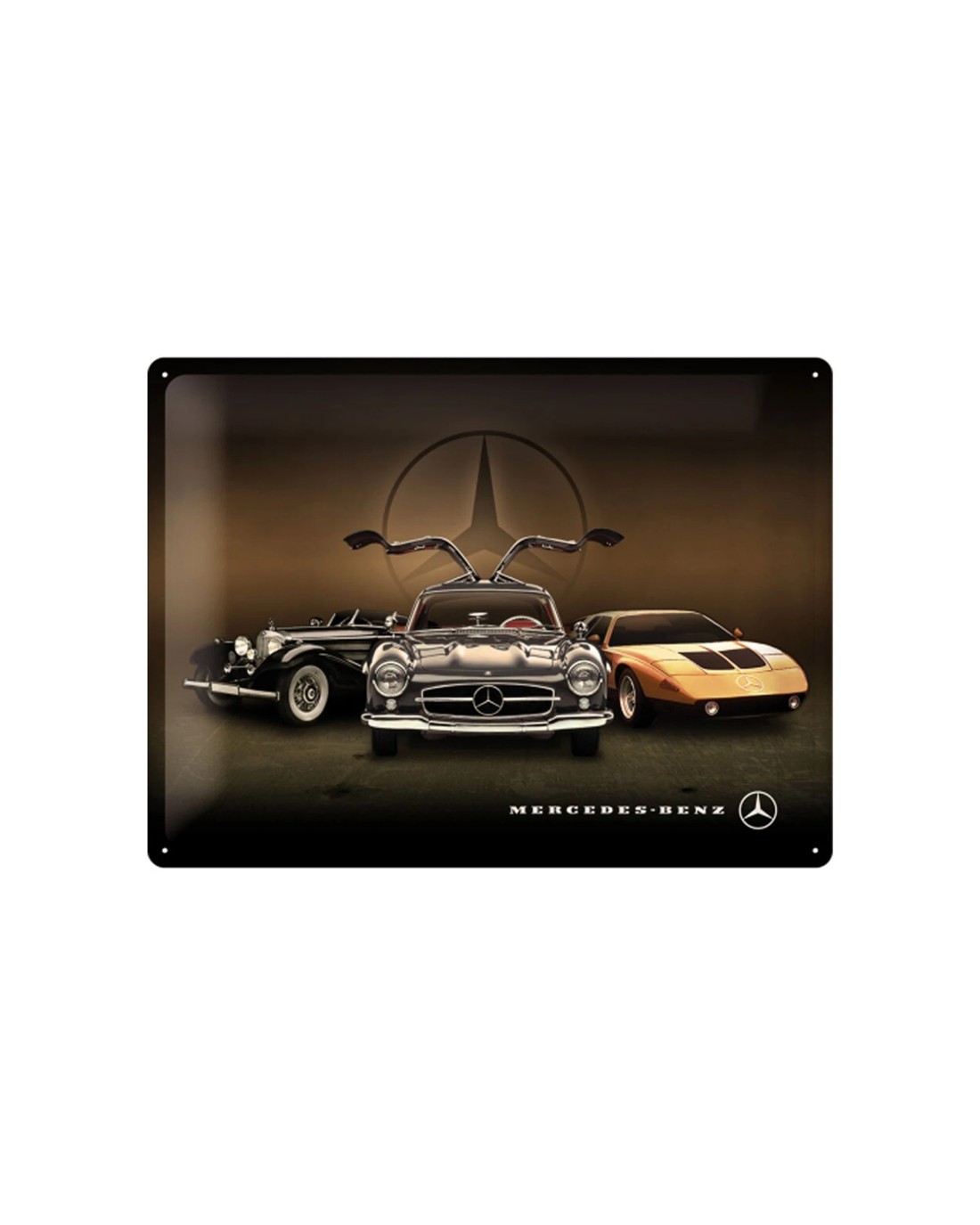 Nostalgic-Art Large 30x40cm Metal Wall Art Sign Plaque - Mercedes Benz 3 Cars - Black