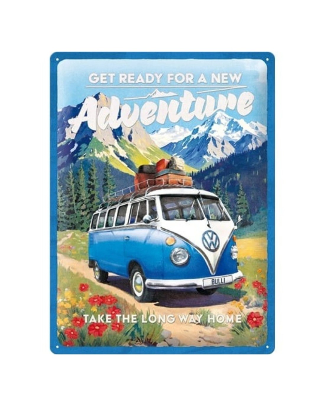 Nostalgic-Art Large 30x40cm Metal Wall Art Sign Plaque - VW Bulli Ready For A New Adventure - Multi