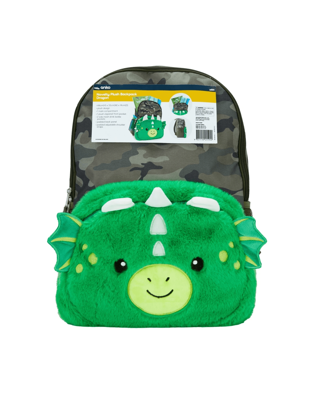 Novelty Plush Backpack - Dragon, Green