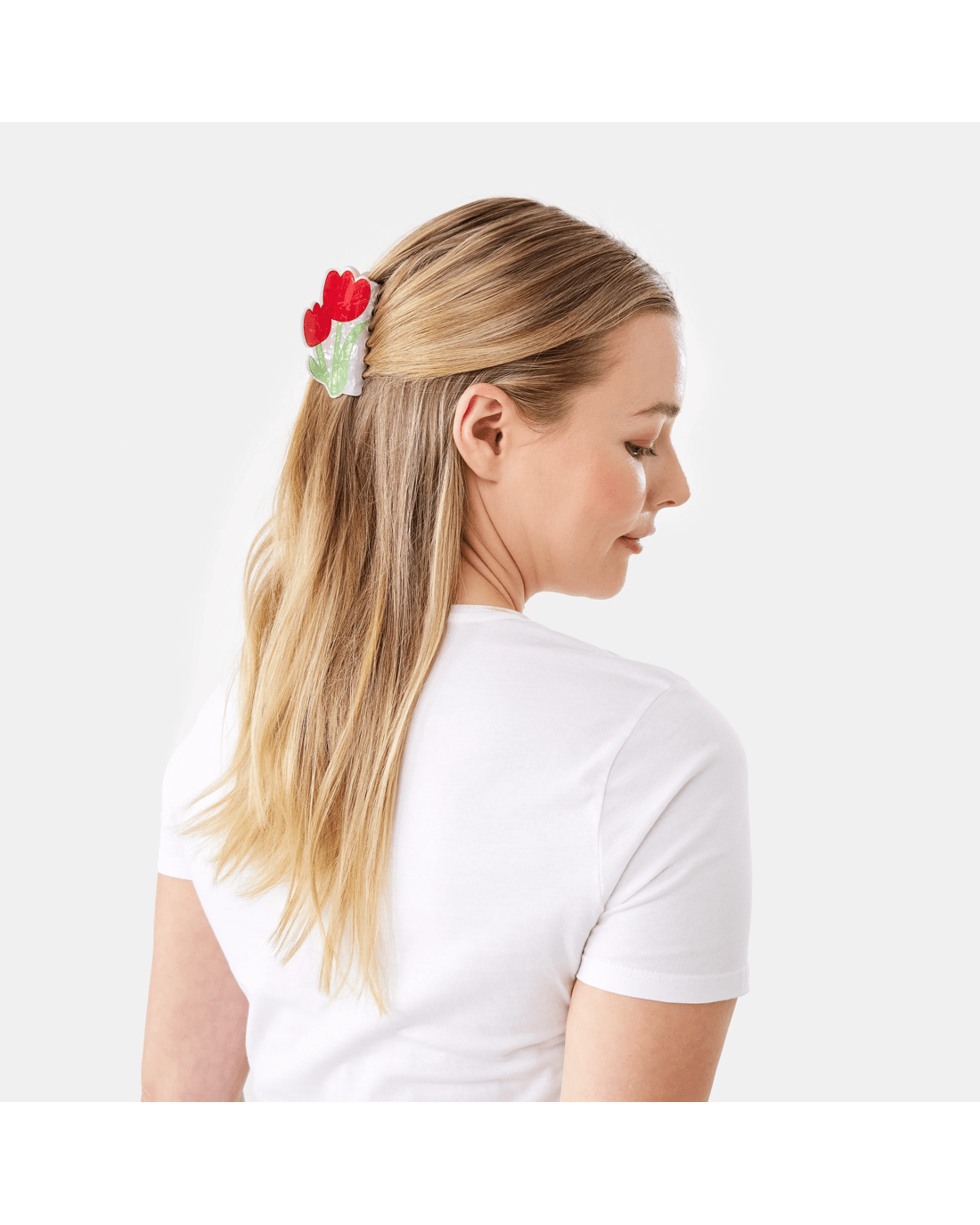 Brighten your look with this Novelty Tulip Claw Hair Clip. Its unique tulip design and firm grip combine style and function, making it perfect for playful, elegant or everyday hairstyles.