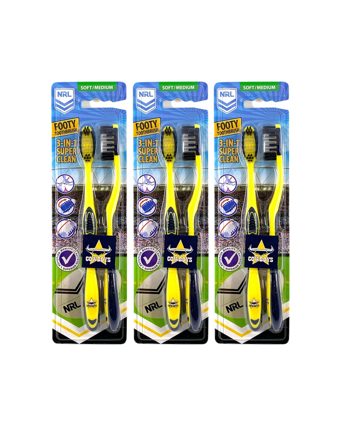 Sold by KG SuperStoreNRL 3x 2pc North Queensland Cowboys Soft/Medium Toothbrush Kids/Adults - Multi