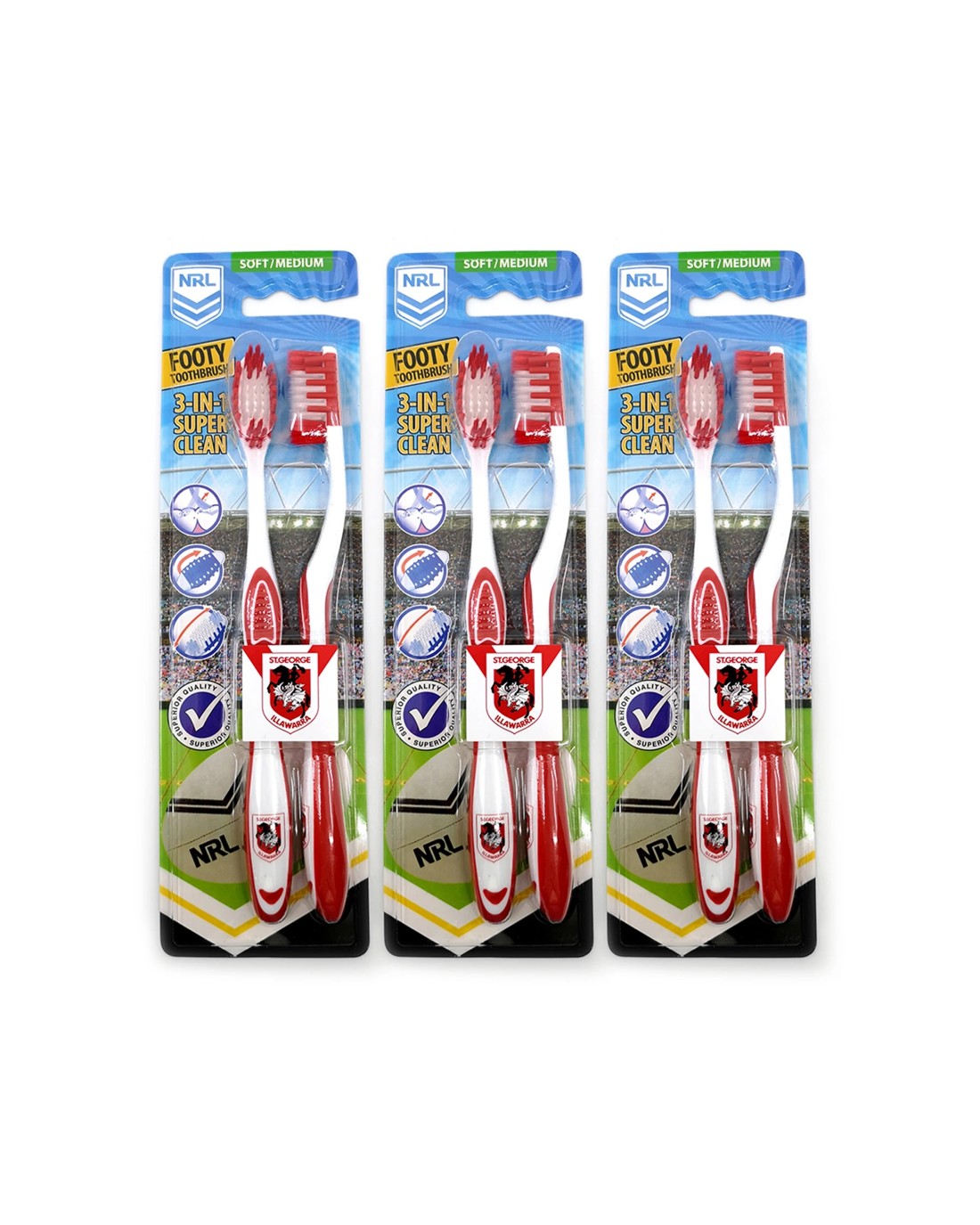 Sold by KG SuperStoreNRL 3x 2pc St George Illawarra Dragons Soft/Medium Toothbrush Kids/Adults - Multi