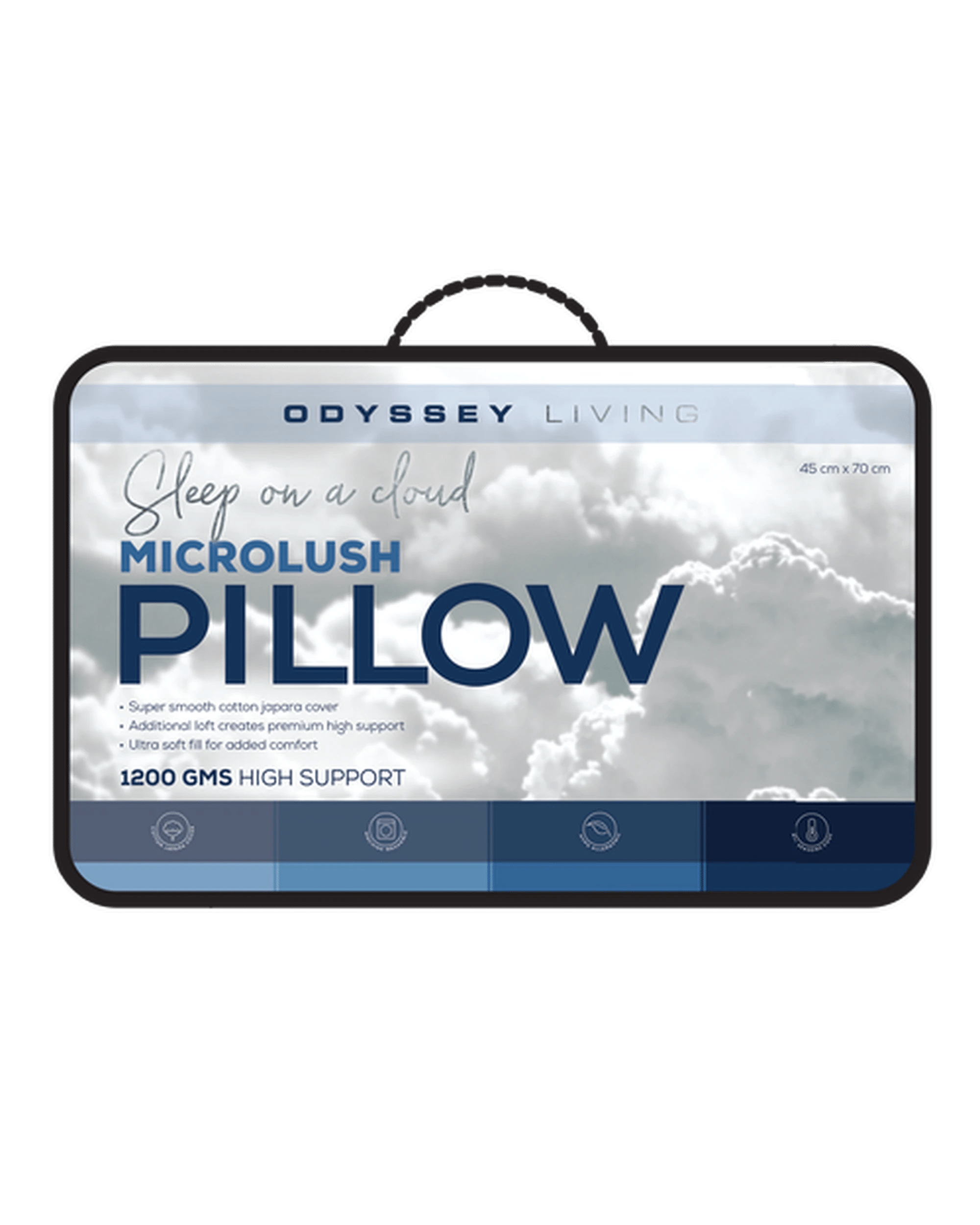 Odyssey Living Microlush Pillow 45 x 70 cm, 1200gsm Microfibre Fill, 100% Cotton Japara Cover - White