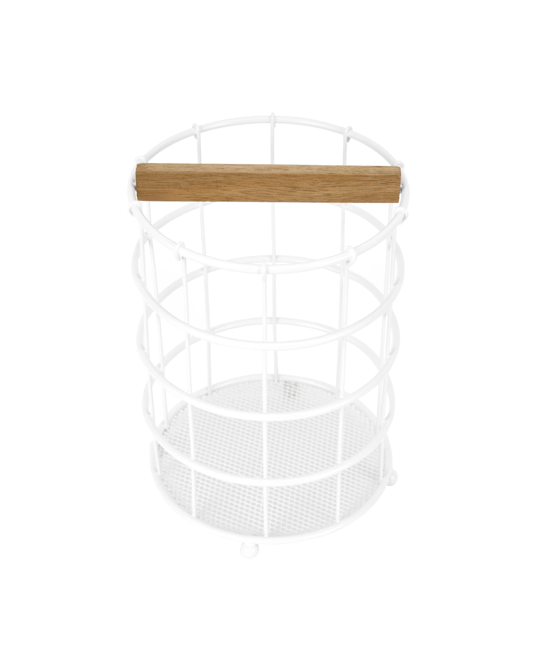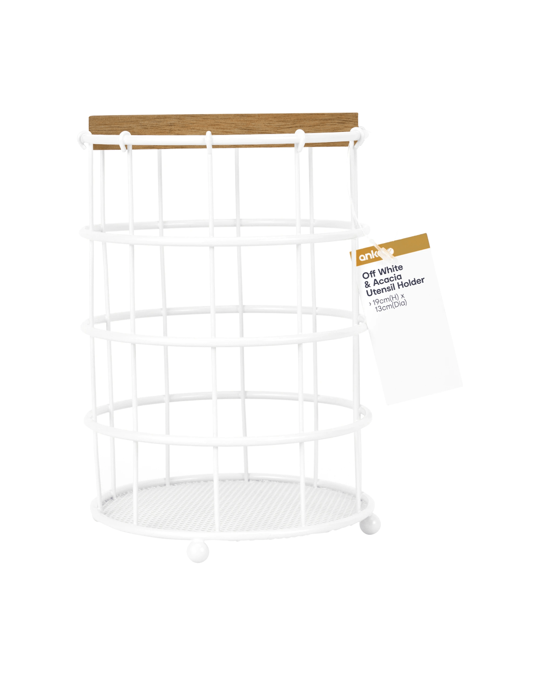 Off White and Acacia Utensil Holder