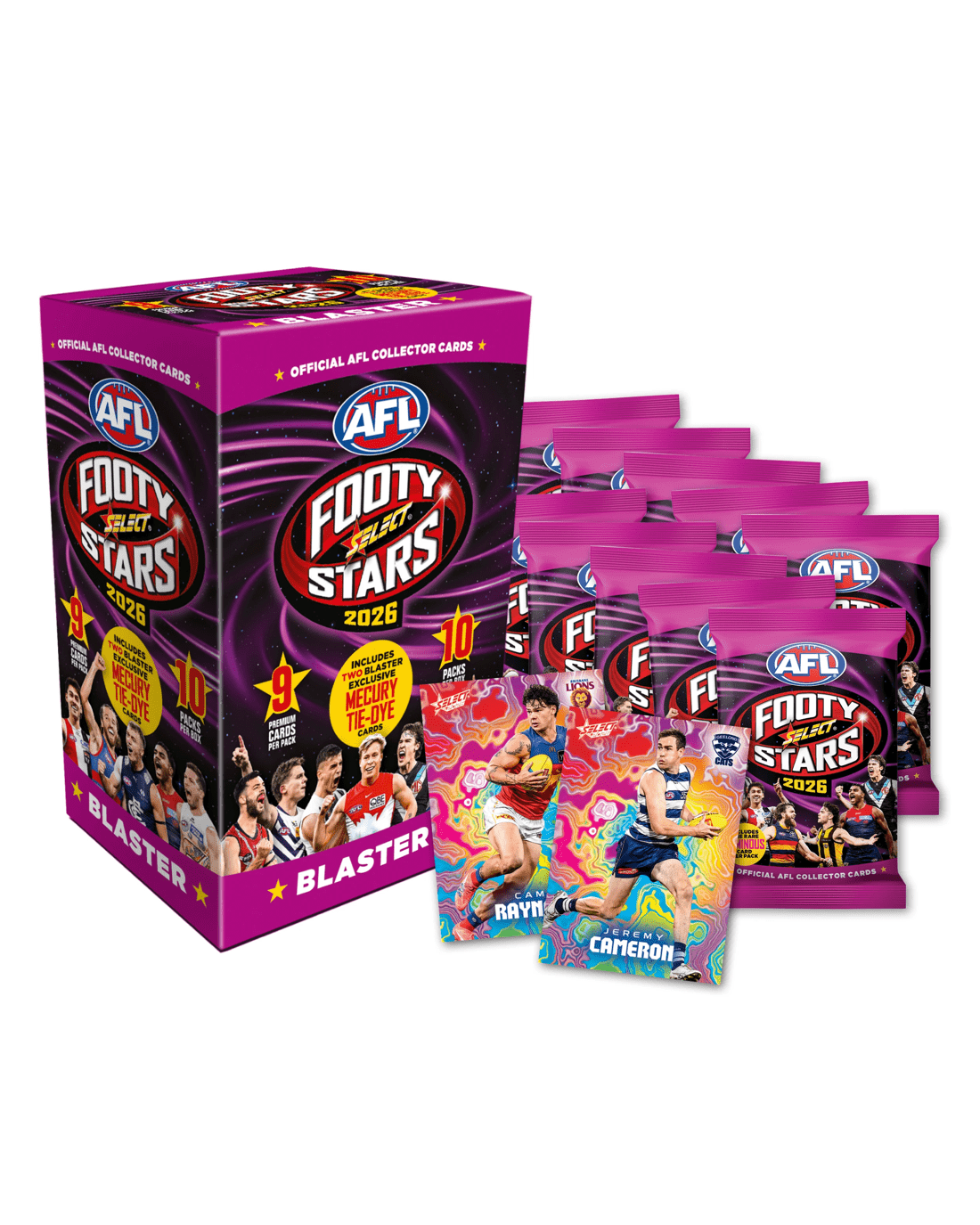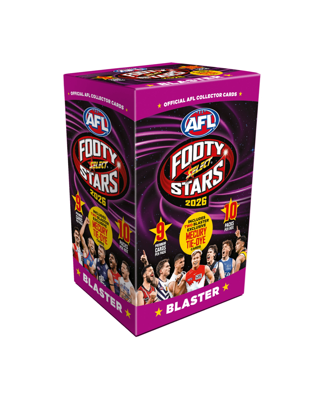 - Includes 10 x packs of 2026 AFL Footy Stars per blaster and 2 x exclusive blaster mercury tie-dye cards