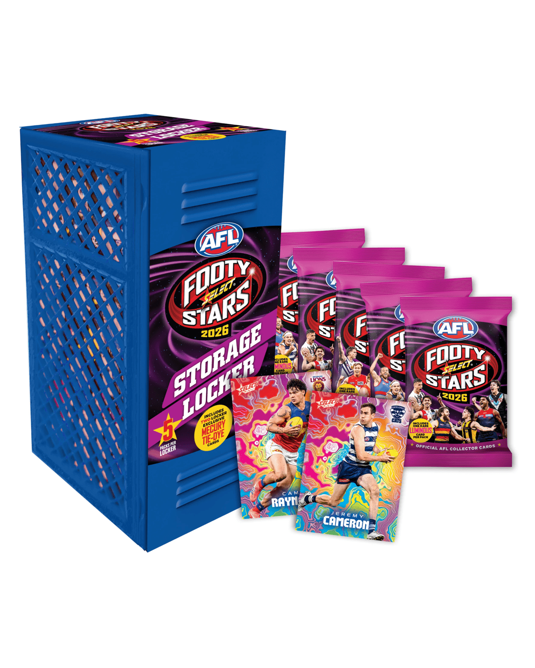 - Includes 5 x packs of 2026 AFL Footy Stars per locker and 2 x exclusive locker mercury tie-dye cards