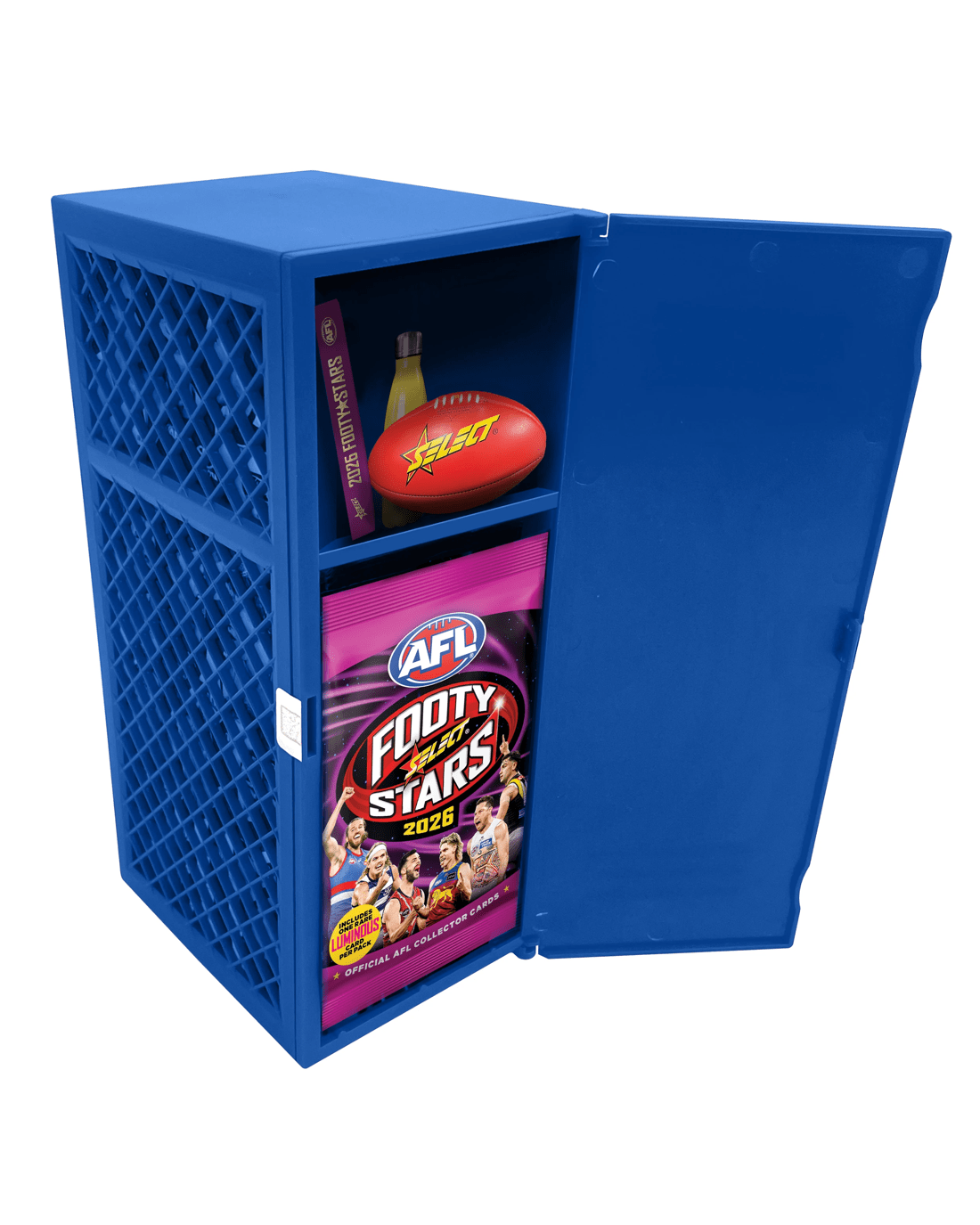 Select's 2026 AFL Footy Stars Blaster Storage Locker! Perfect to carry around, to trade cards with friends or as a way to store your footy cards safely. This unique, practical, collectable, high quality card storage locker, comes as a Blaster product, meaning it includes some packs as well!