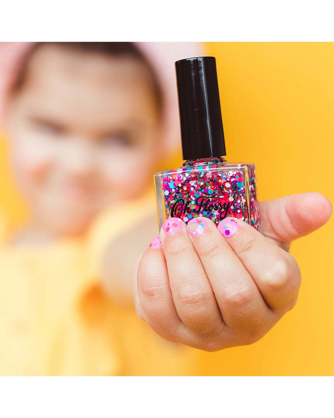 Easy to Remove: Wipes away easily with Oh Flossy Water-Based Nail Polish Remover, simplifying cleanup for parents and children.