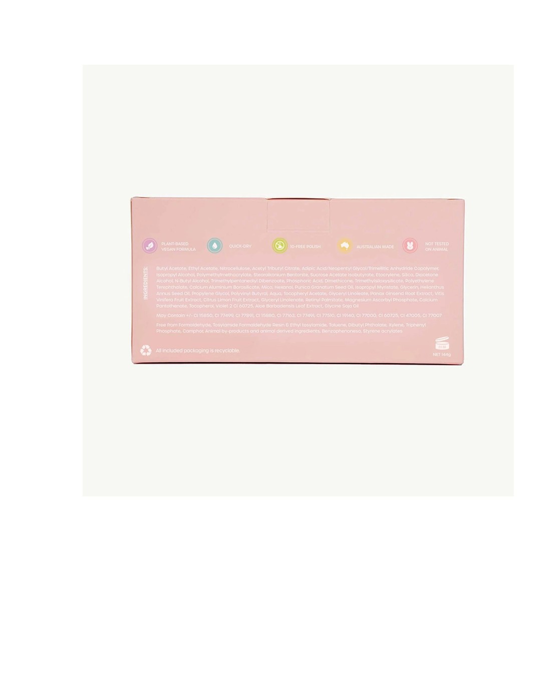 The set features a pink cream polish, a glittery multicoloured confetti polish, and a violet cream polish, all housed in a beautifully designed box created by local Western Australian artist Rosa Ronco. The packaging adds a delightful touch to gift-giving occasions and encourages imaginative play.