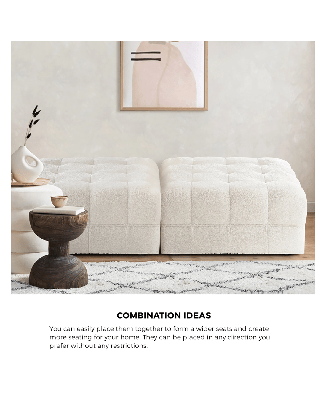 Oikiture 1 Seater Boucle Modular Ottoman Lounge Chair Armless Tofu - White