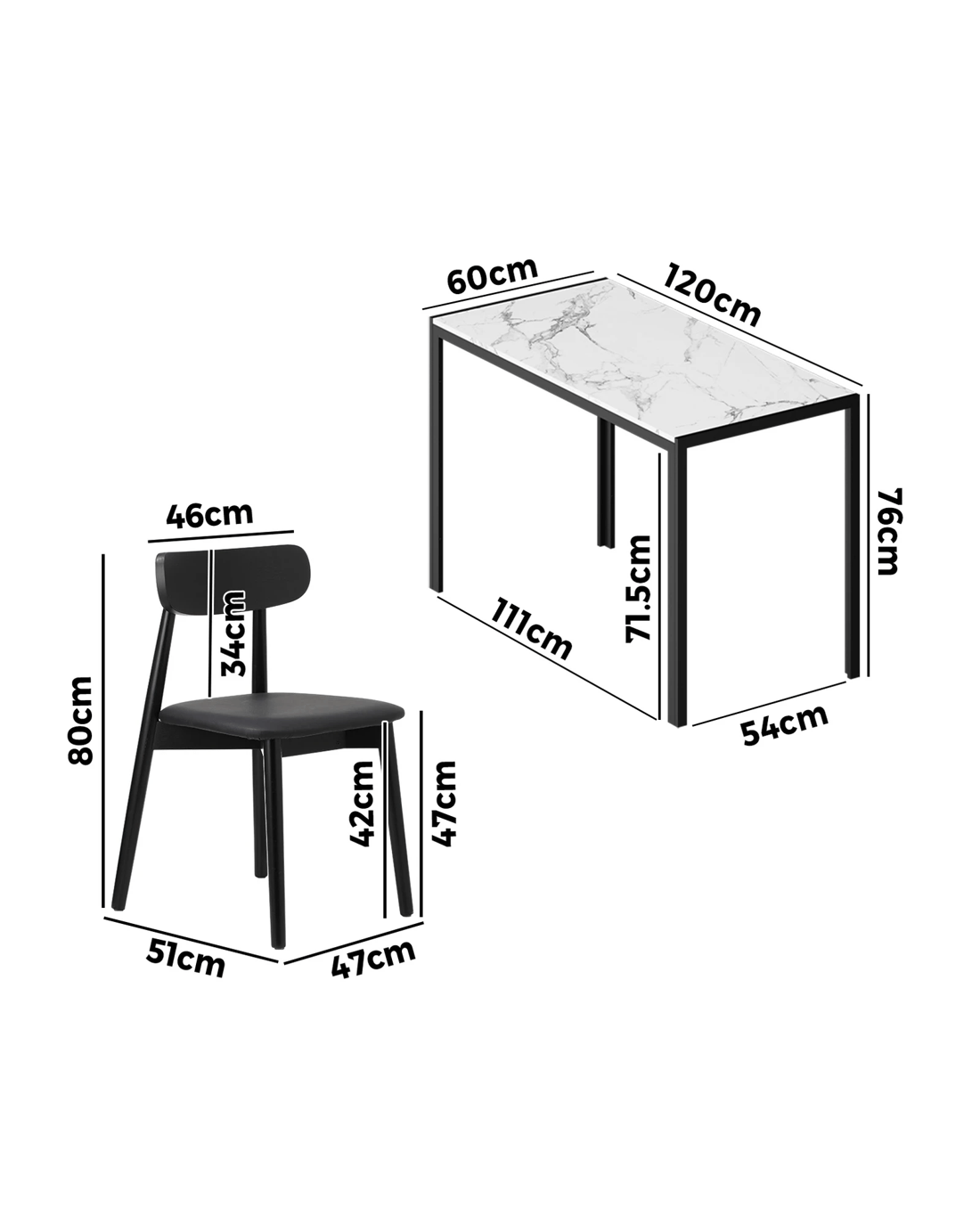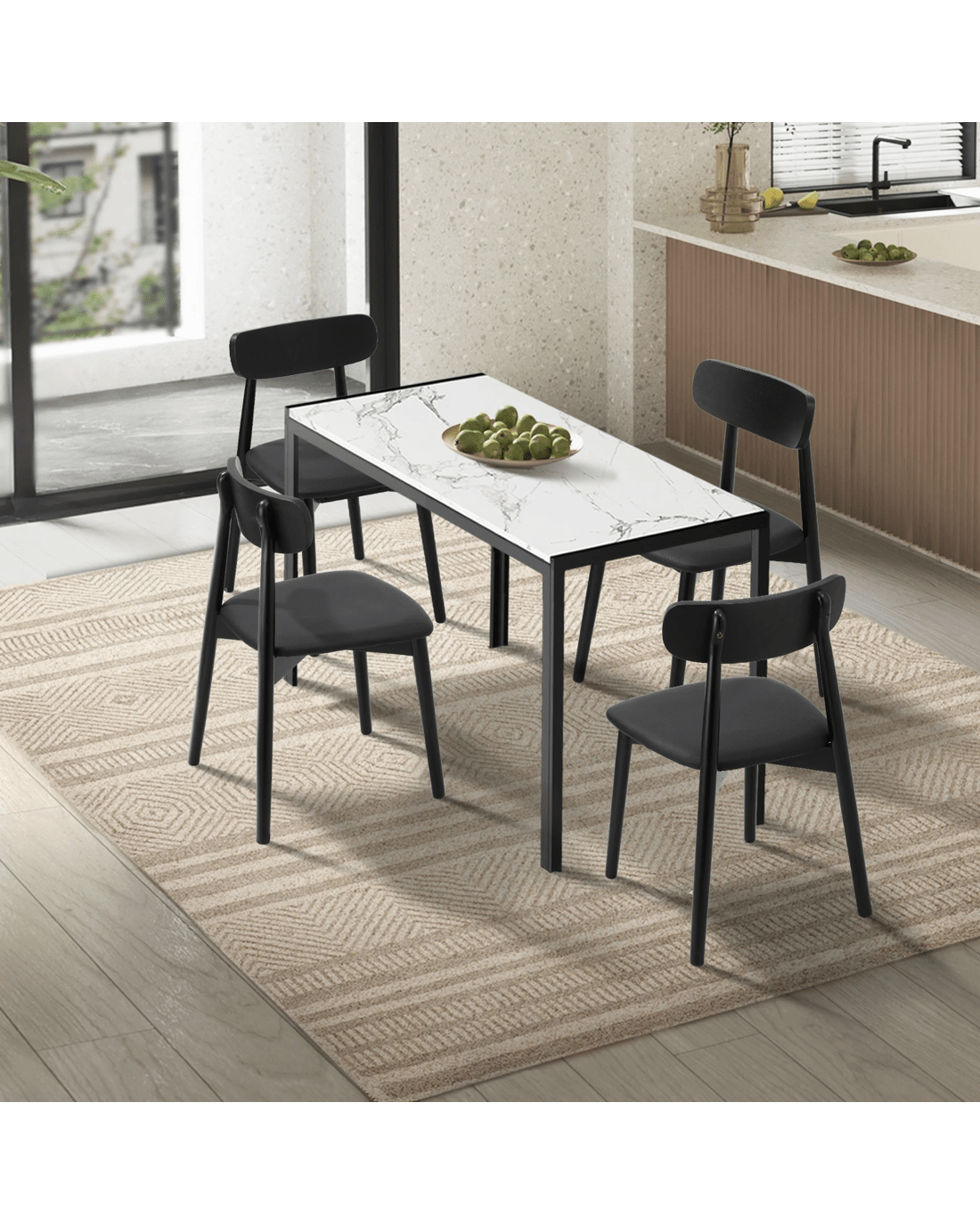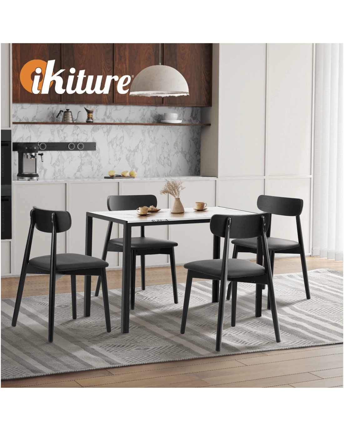 Oikiture 1.2m Dining Table Set with 4PCS Wooden Chairs PU Leather - Multi