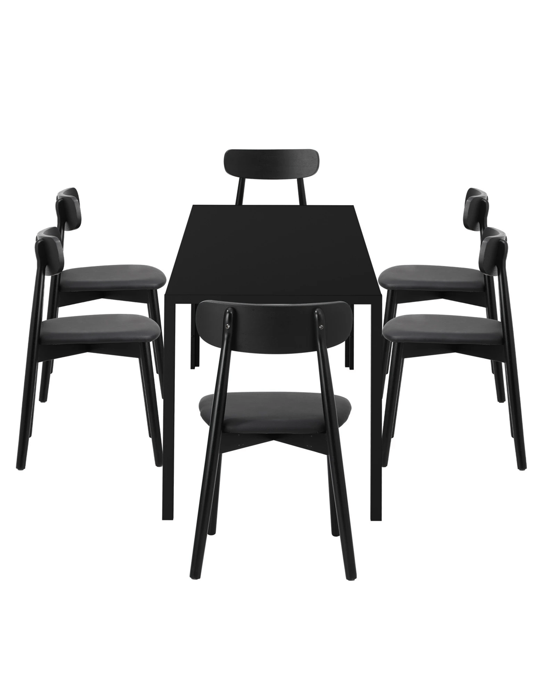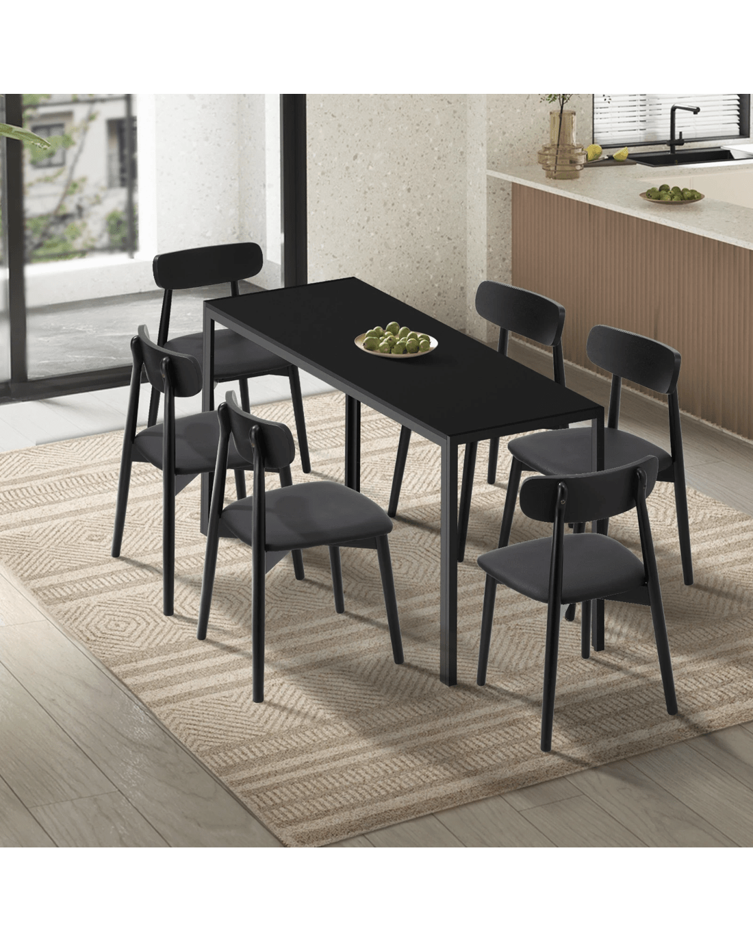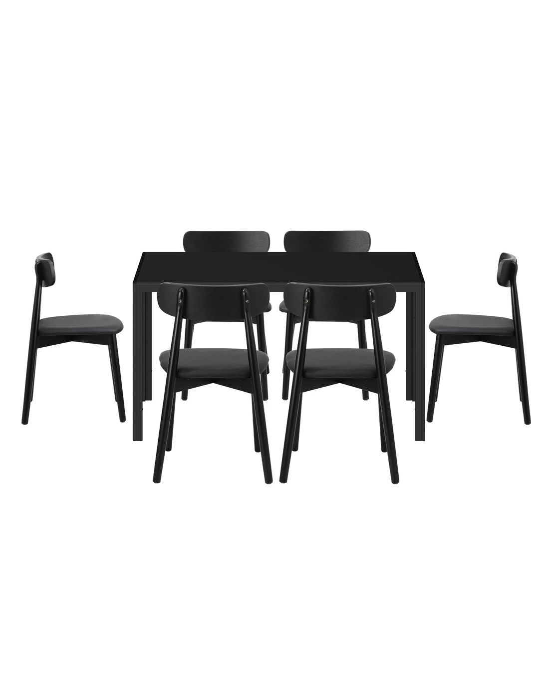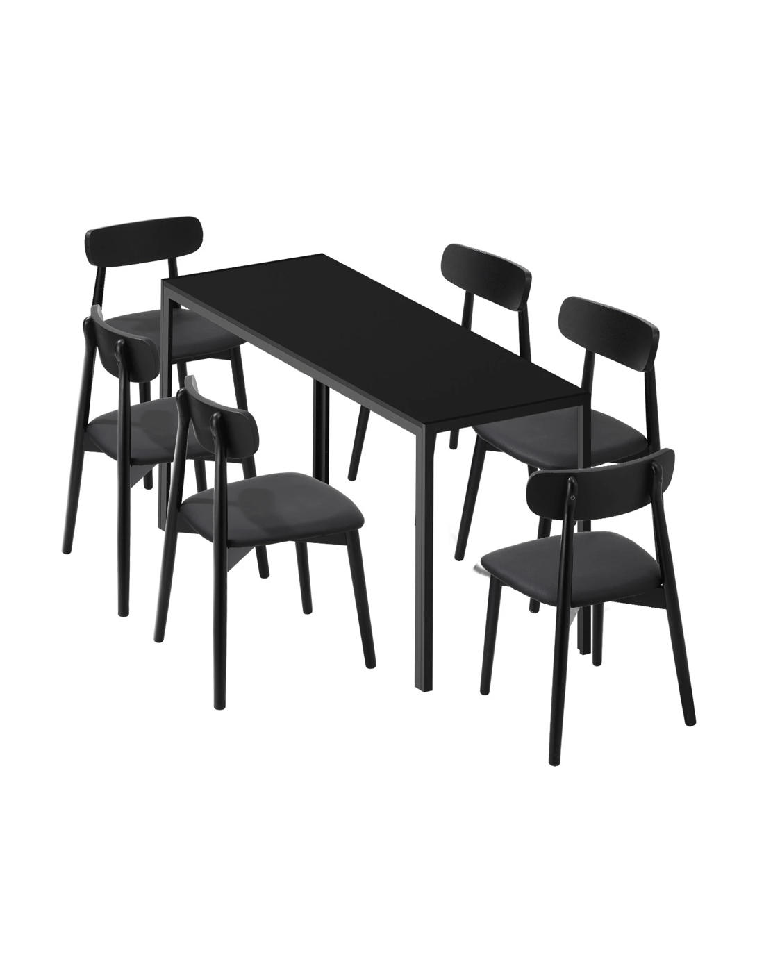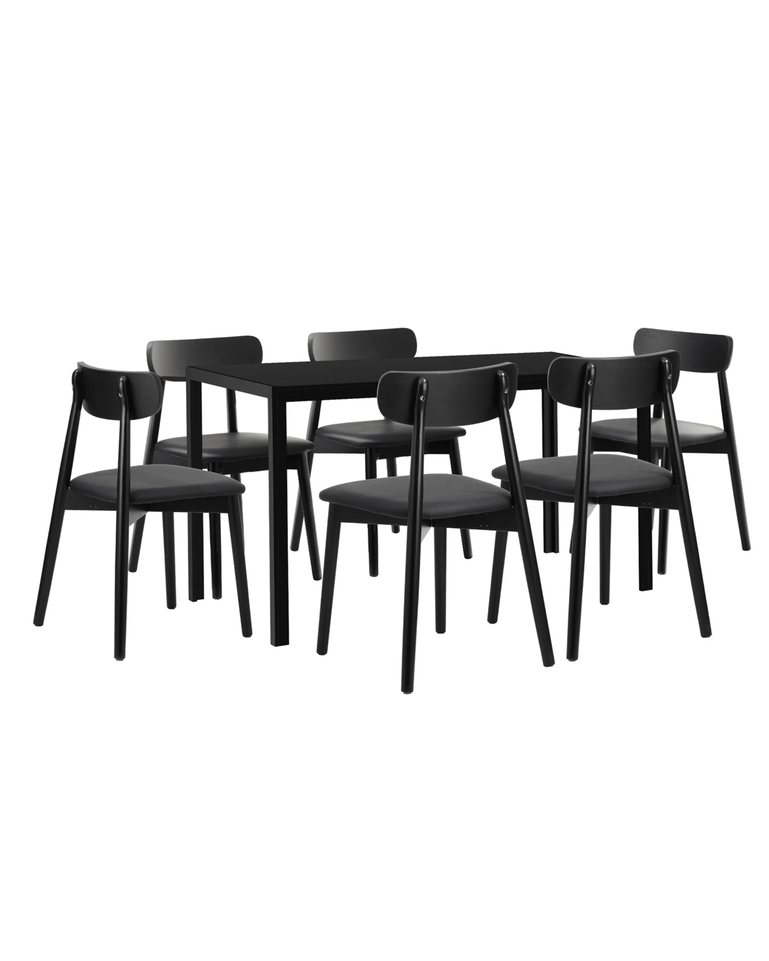 Sold by Kamprad's Oikos 1943Oikiture 1.4m Dining Table Set with 6PCS Wooden Chairs PU Leather - Black