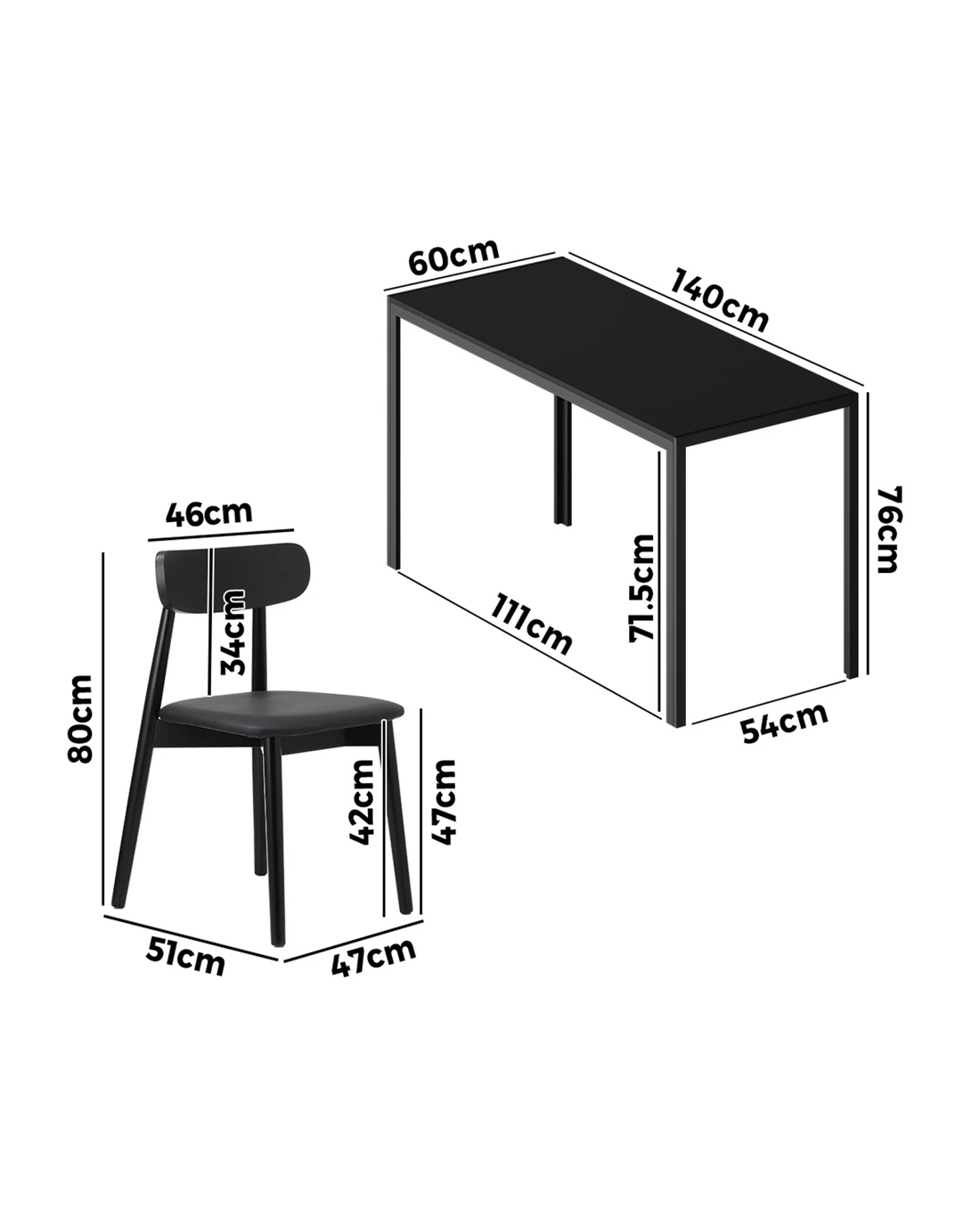 Table dimensions: 140cm x 60cm x 75.5cm