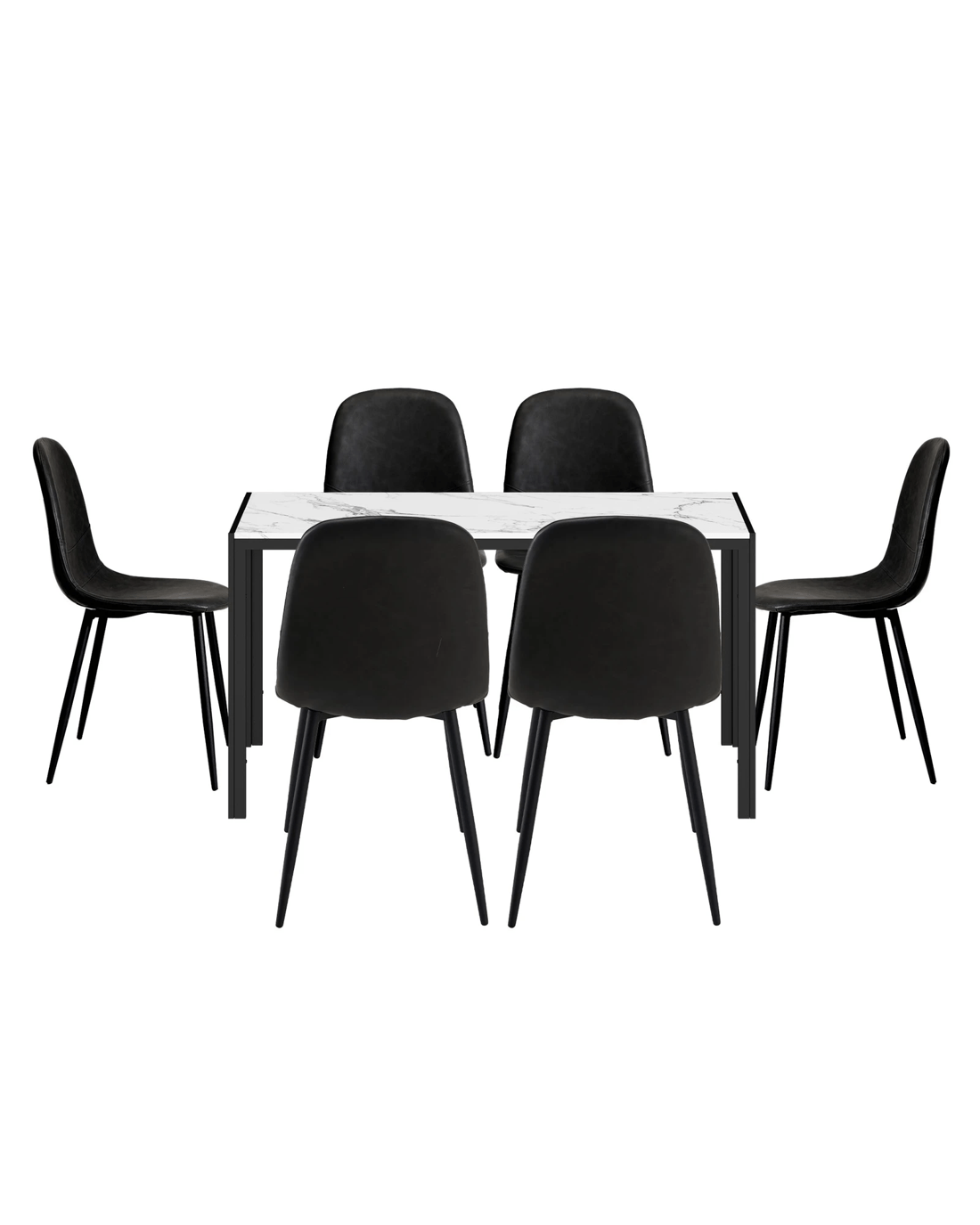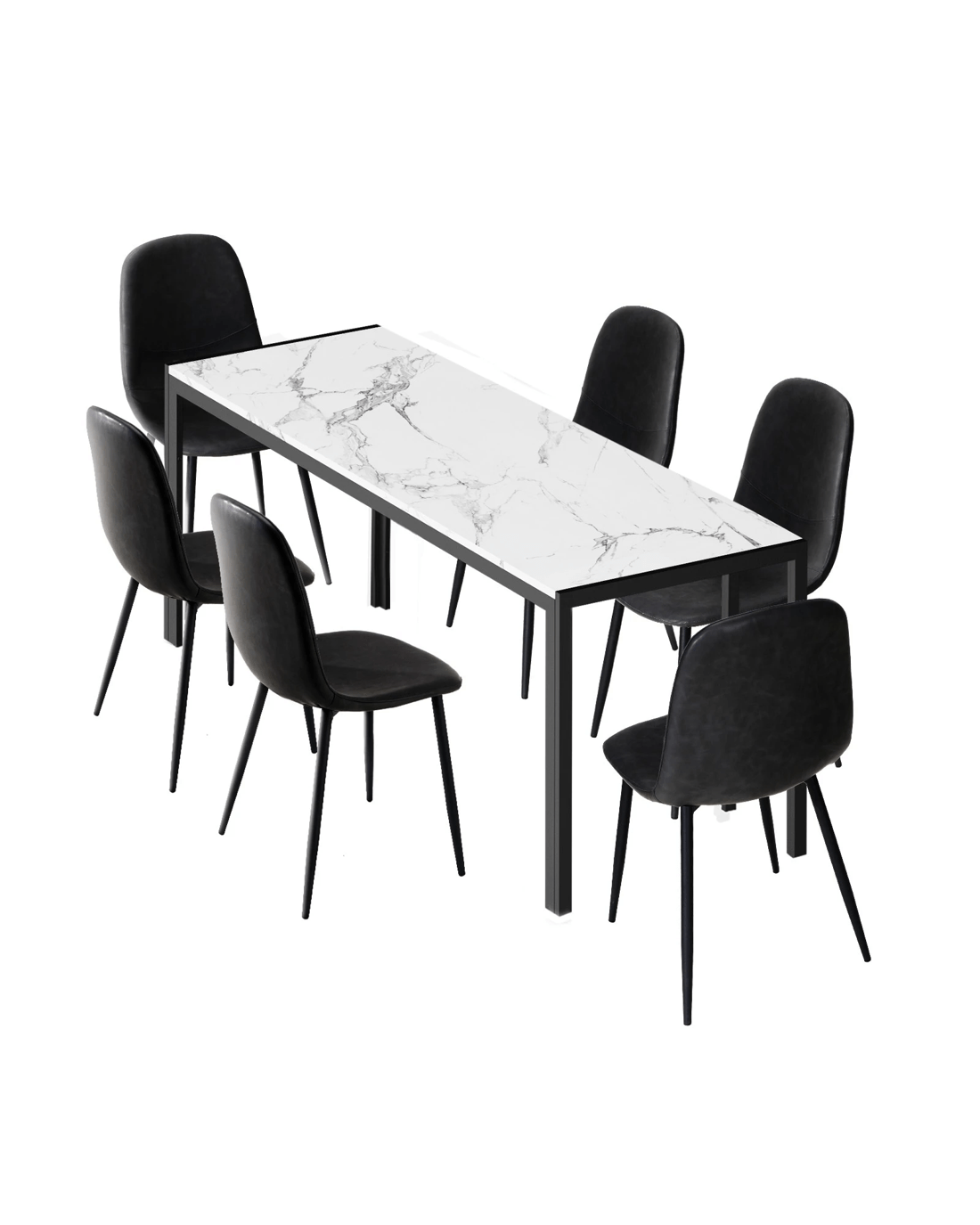 Experience the cohesive aesthetics of this set, where the synergy between the dining table and PU Leather Dining Chairs creates a curated and refined look for your dining space. Meticulously selected materials and finishes ensure that every element complements the other, enhancing the overall appeal of your home.
