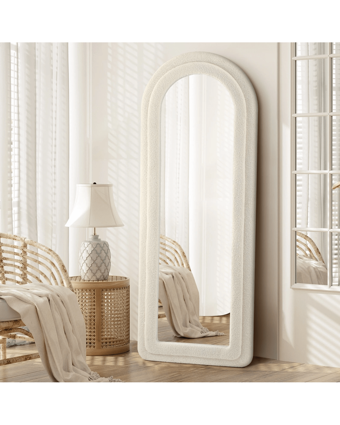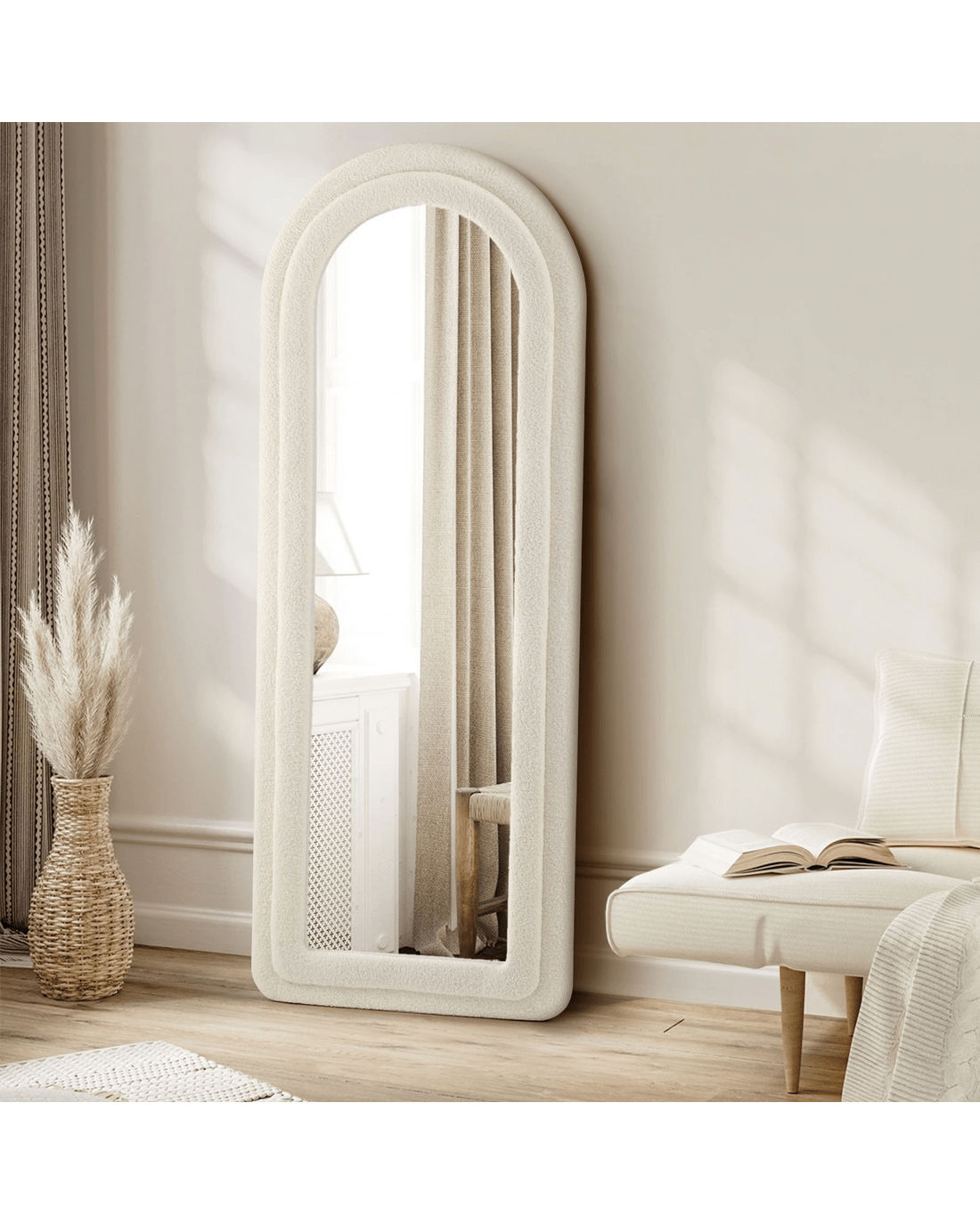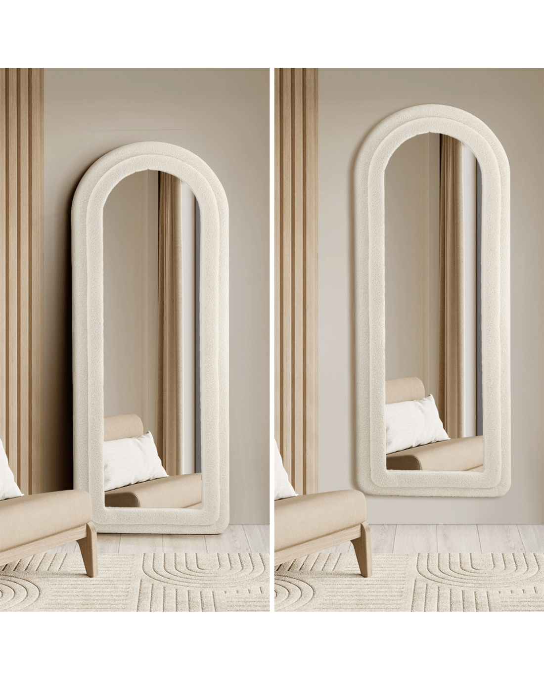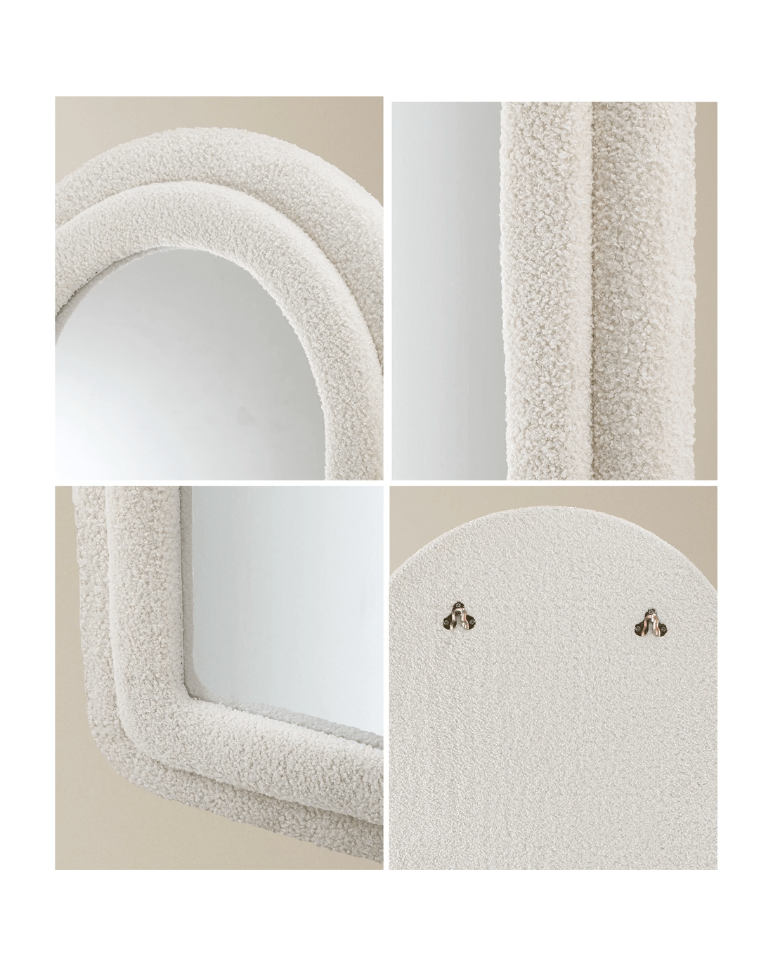 You can also feel the luxury as you run the hands over the white boucle fabric upholstery on the frame that certainly adds a touch of a class and sophistication to the mirror. And with its organic-inspired design, the full-length mirror also stands out from the ordinary with an artistic and abstract appeal. The perfect inspiration to get creative with your styling all over.