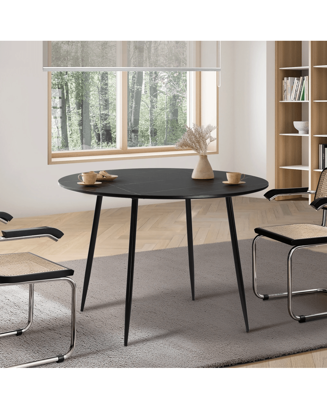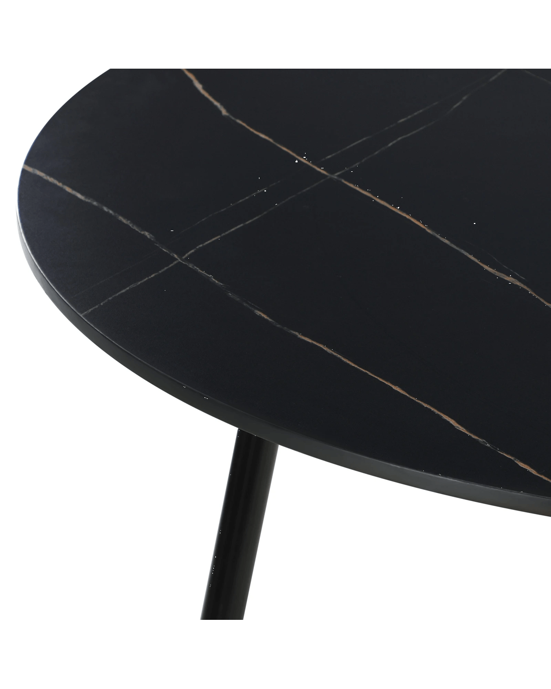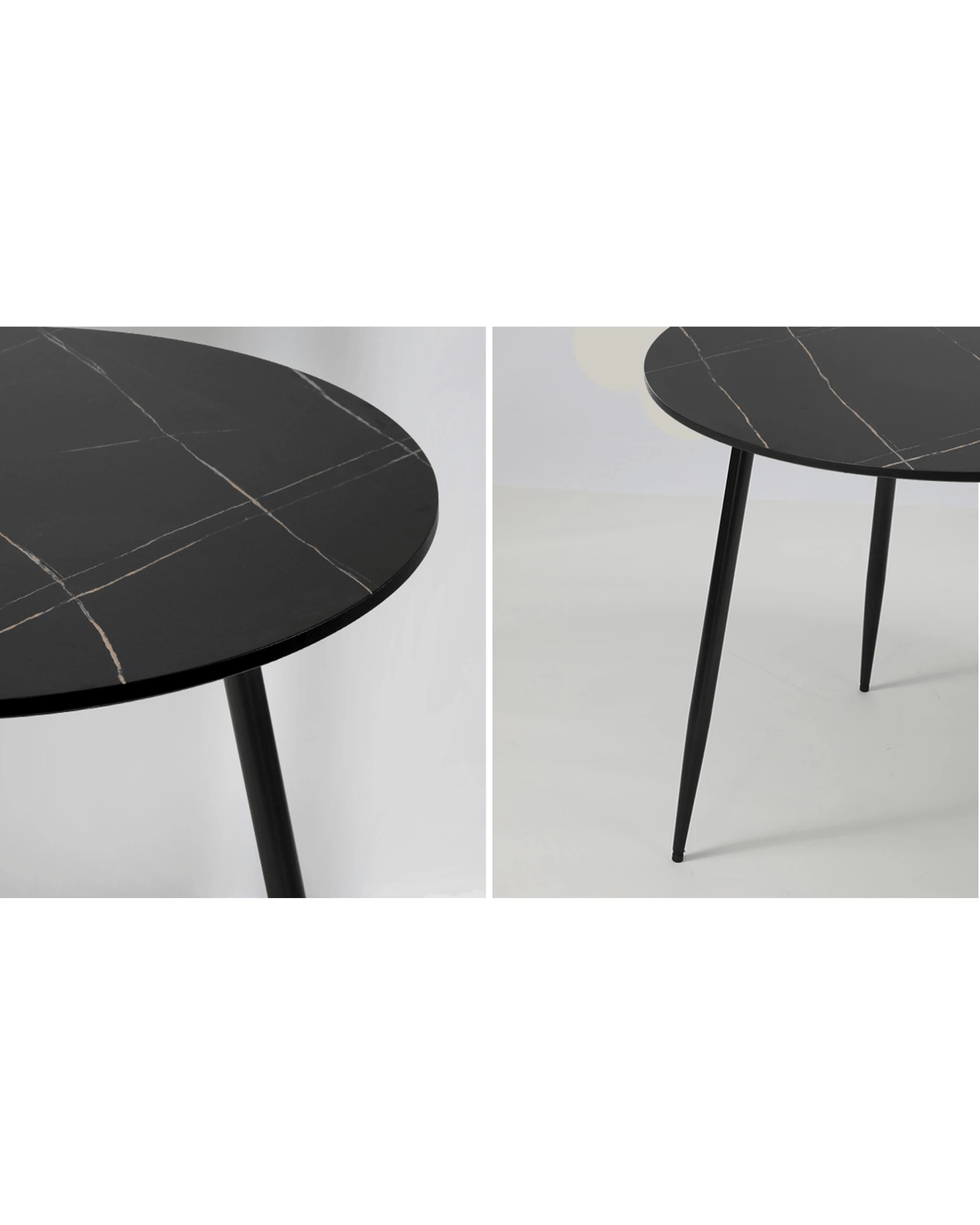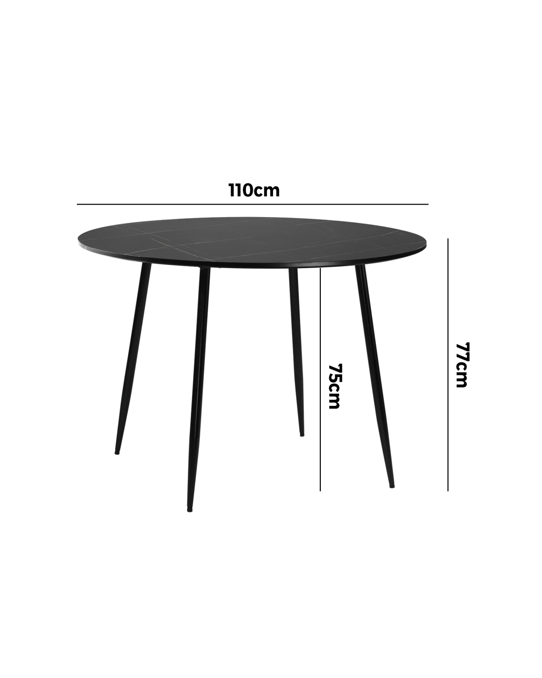 Sold by Kamprad's Oikos 1943Oikiture 110cm Dining Table Round Wooden Table With Marble Effect Metal Legs - Black