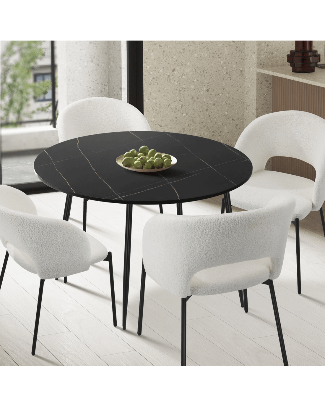 The 110cm round and spacious tabletop provides ample room for hosting memorable dinner parties, family gatherings, or intimate meals with loved ones. Whether you are enjoying a casual breakfast or hosting a formal dinner, this table offers versatility to accommodate any occasion.