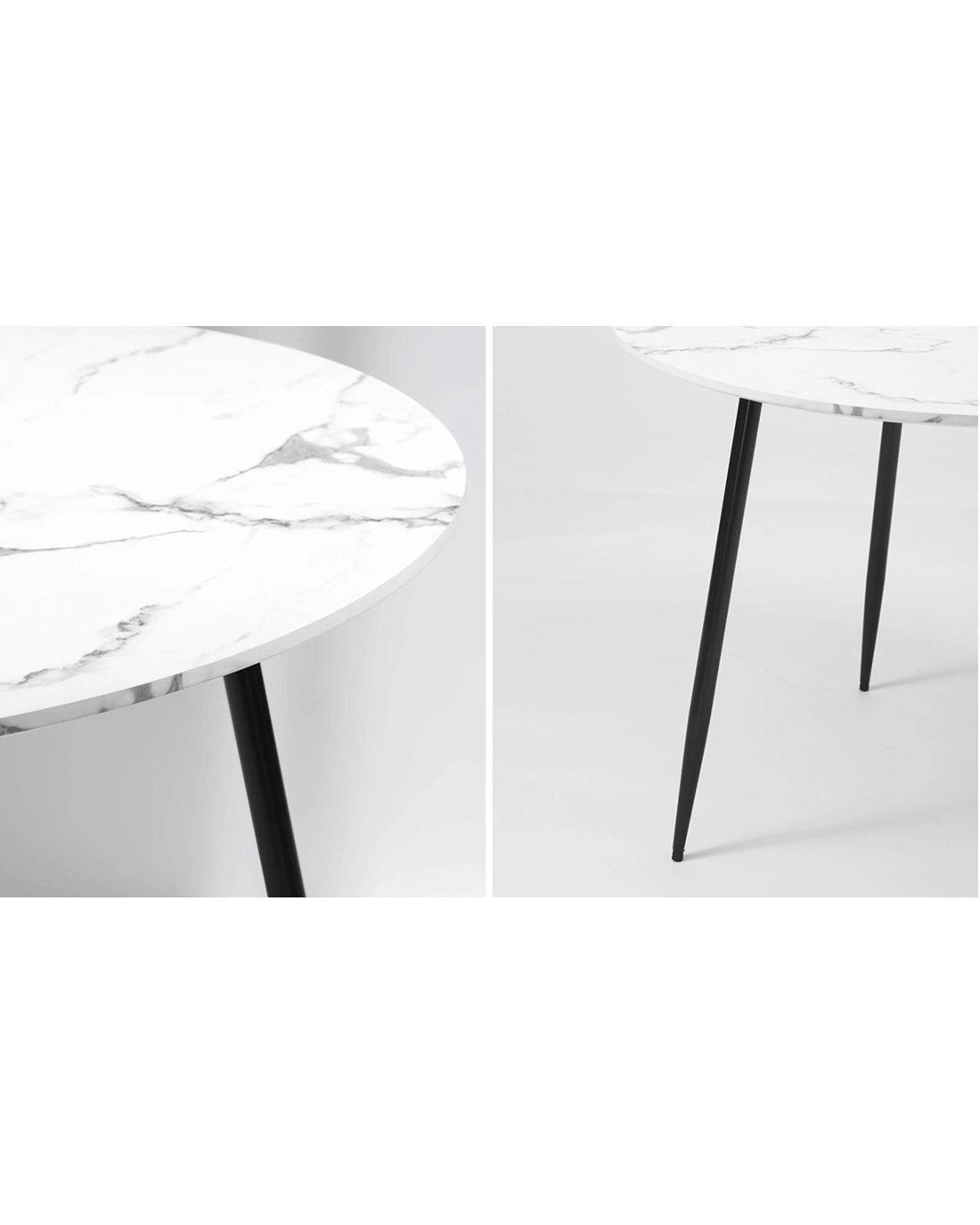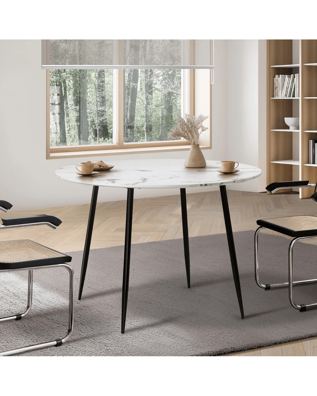 Sold by Kamprad's Oikos 1943Oikiture 110cm Dining Table Round Wooden Table With Marble Effect Metal Legs - Multi