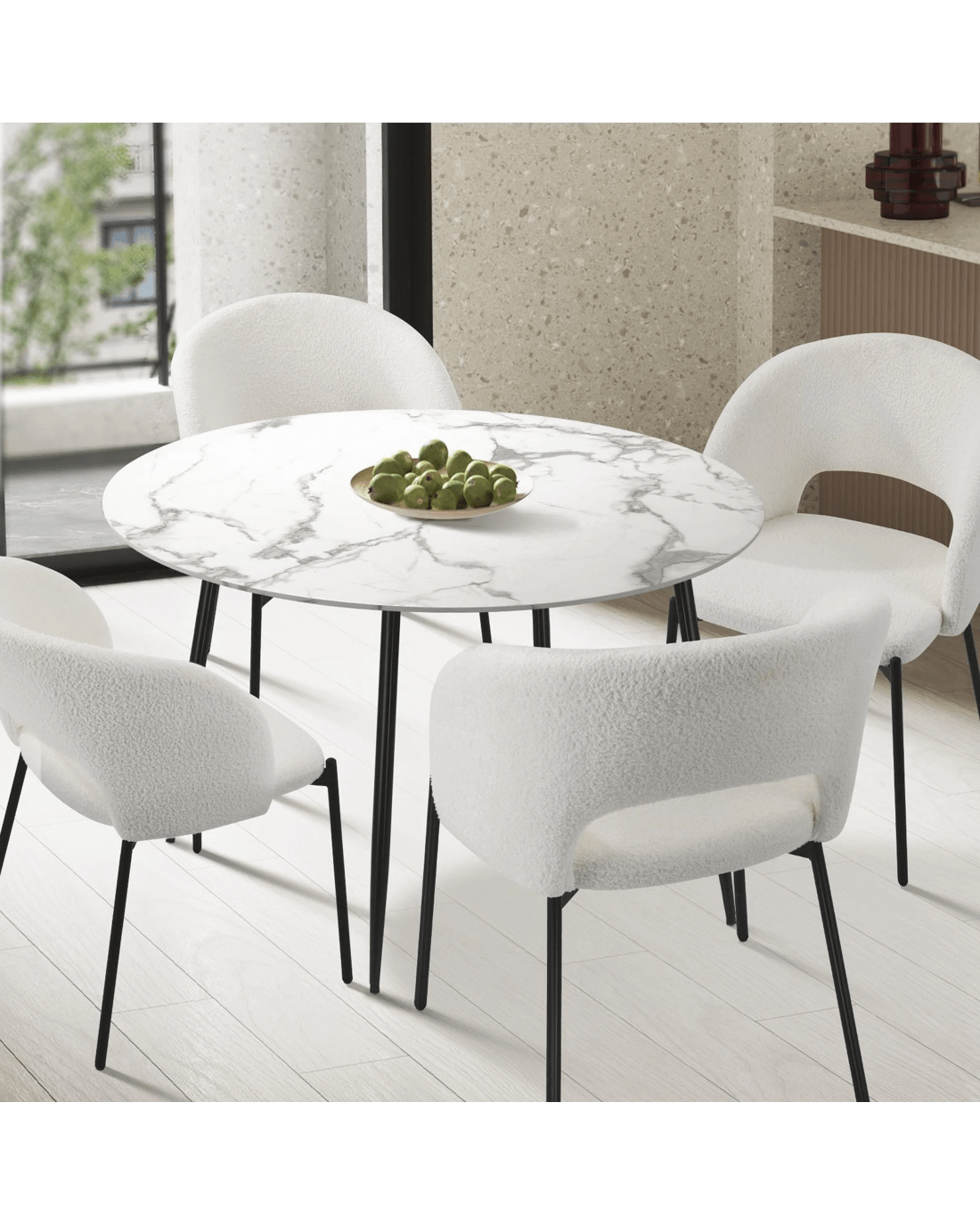 The 110cm round and spacious tabletop provides ample room for hosting memorable dinner parties, family gatherings, or intimate meals with loved ones. Whether you are enjoying a casual breakfast or hosting a formal dinner, this table offers versatility to accommodate any occasion.