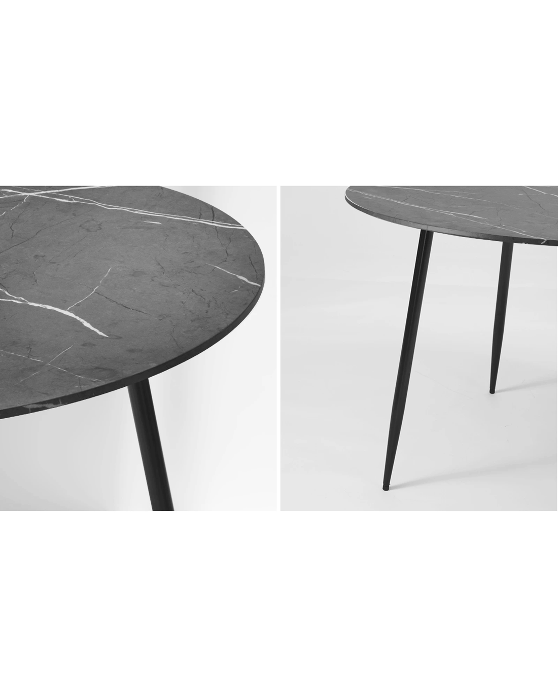 Sold by Kamprad's Oikos 1943Oikiture 110cm Dining Table Round Wooden Table With Marble Effect Metal Legs - Multi