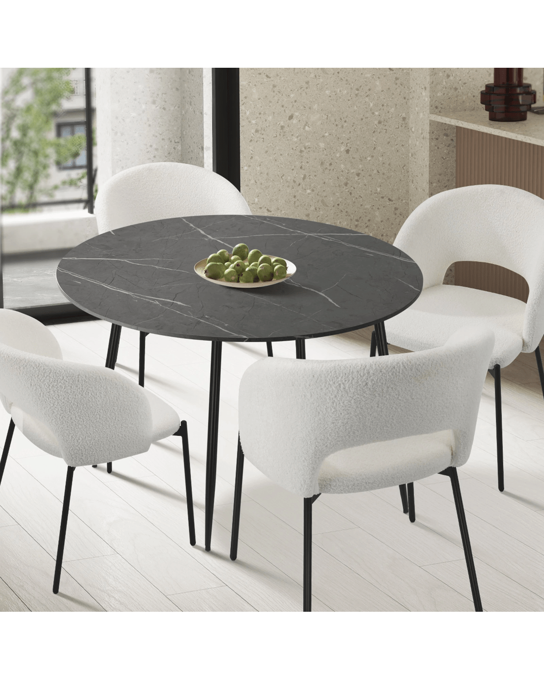 The 110cm round and spacious tabletop provides ample room for hosting memorable dinner parties, family gatherings, or intimate meals with loved ones. Whether you are enjoying a casual breakfast or hosting a formal dinner, this table offers versatility to accommodate any occasion.