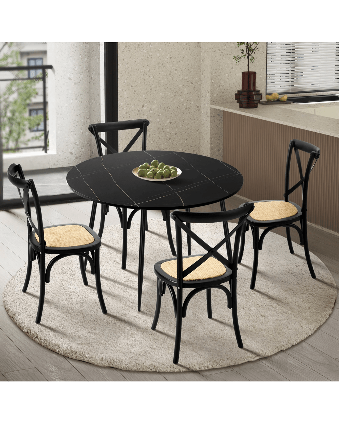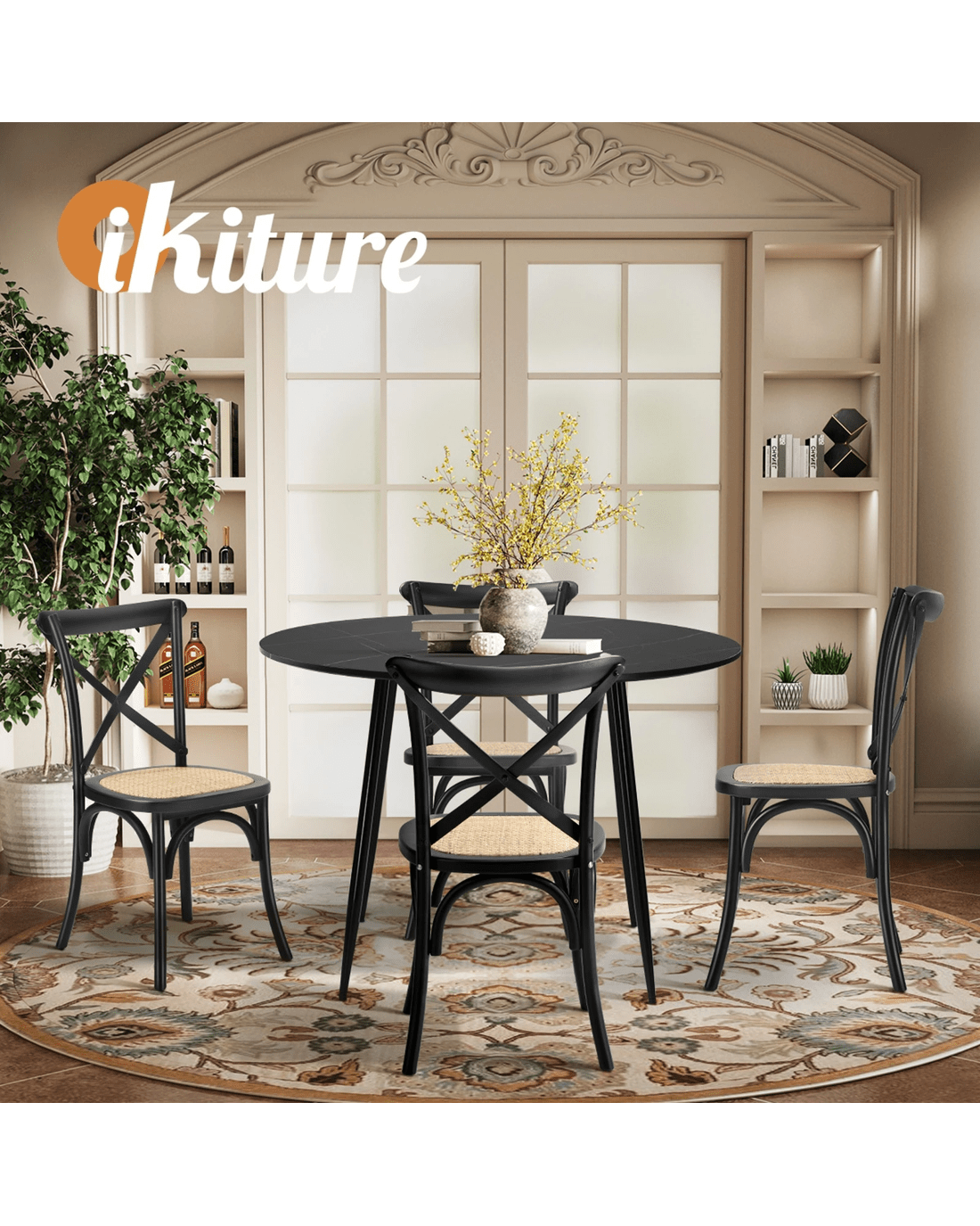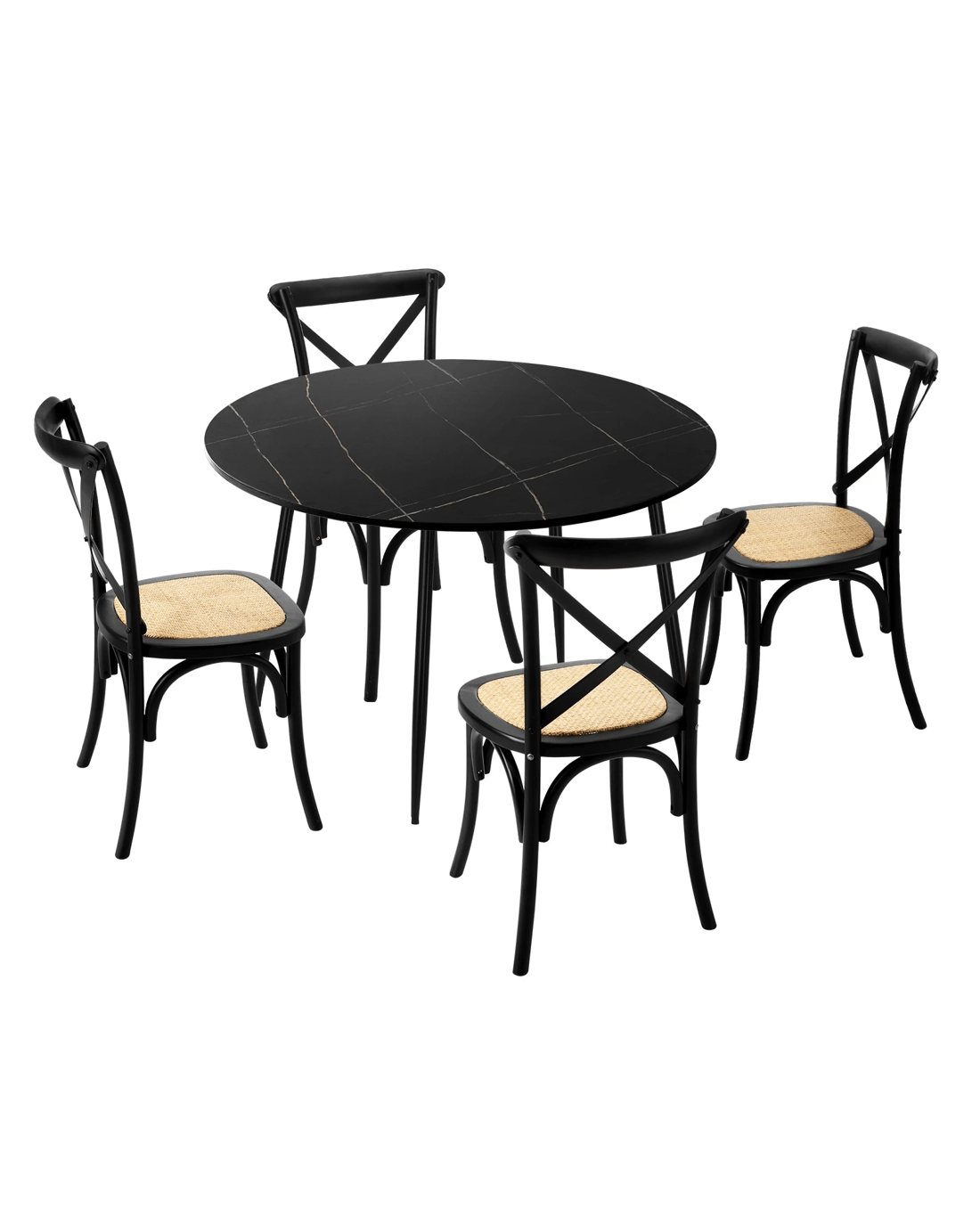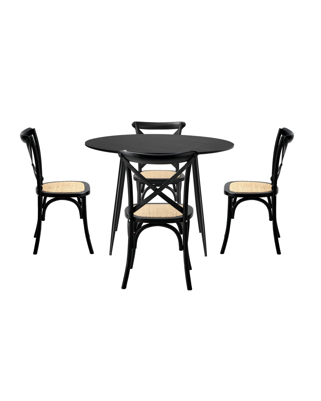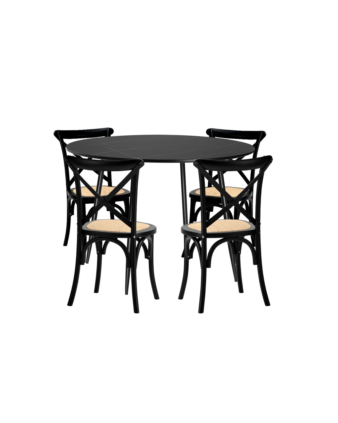 Oikiture 110cm Round Dining Table with 4PCS Dining Chairs Birch Timber - Black