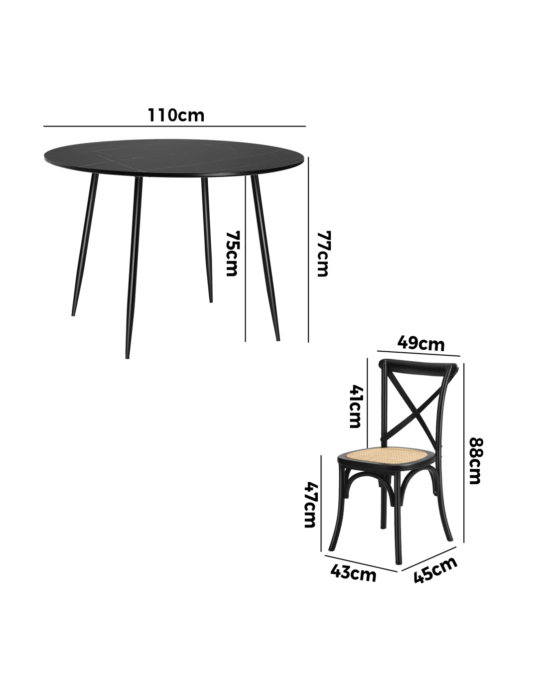 Tabletop diameter: 110cm