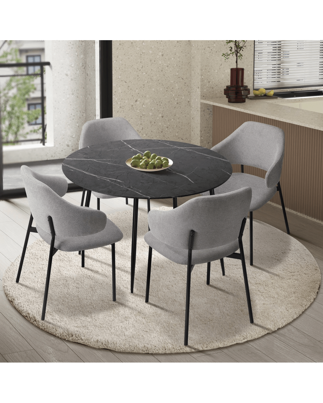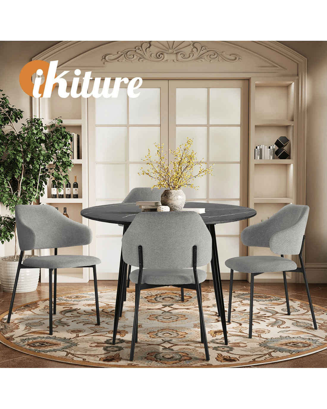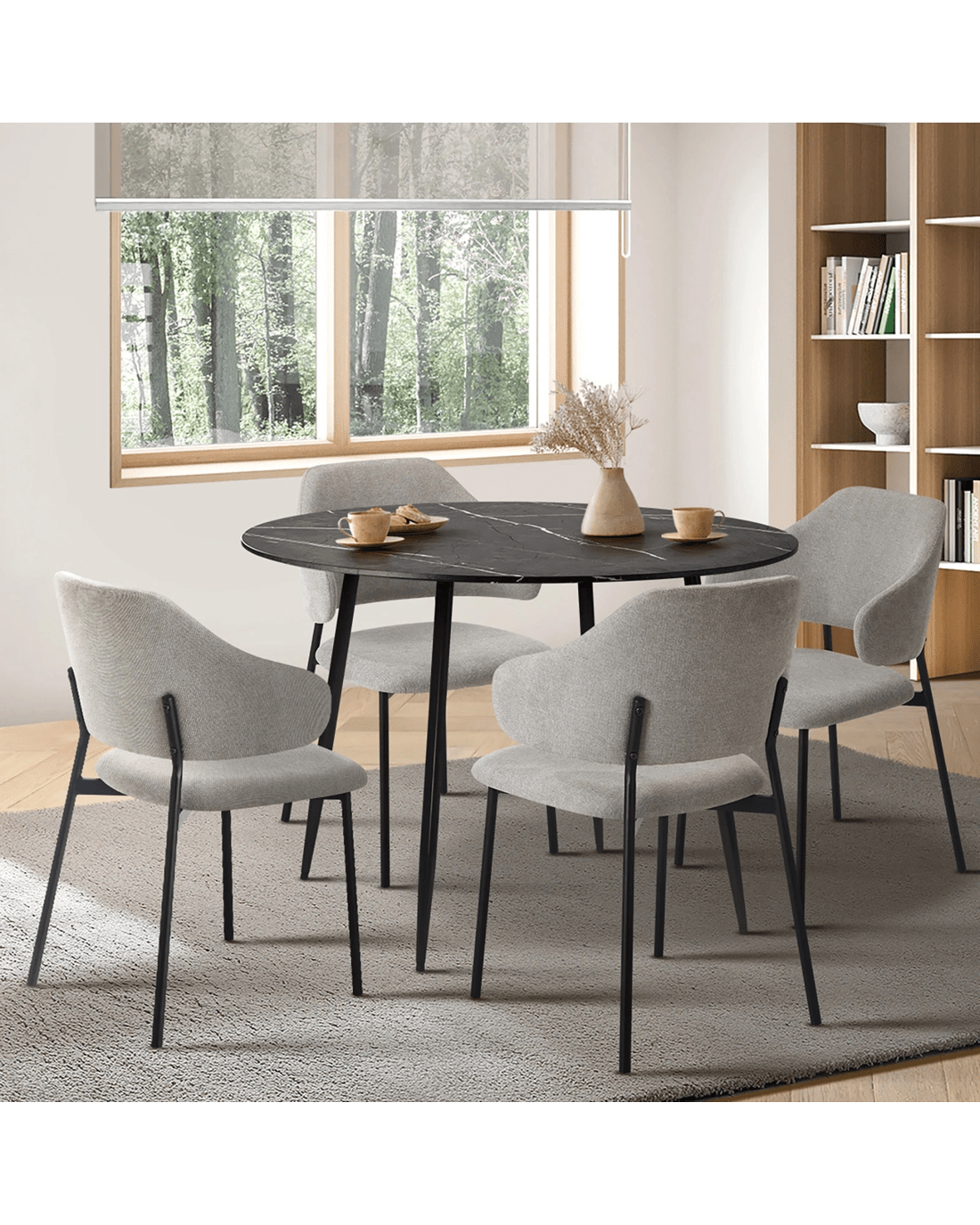 Sold by Kamprad's Oikos 1943Oikiture 110cm Round Dining Table With 4pcs Dining Chairs Linen - Multi