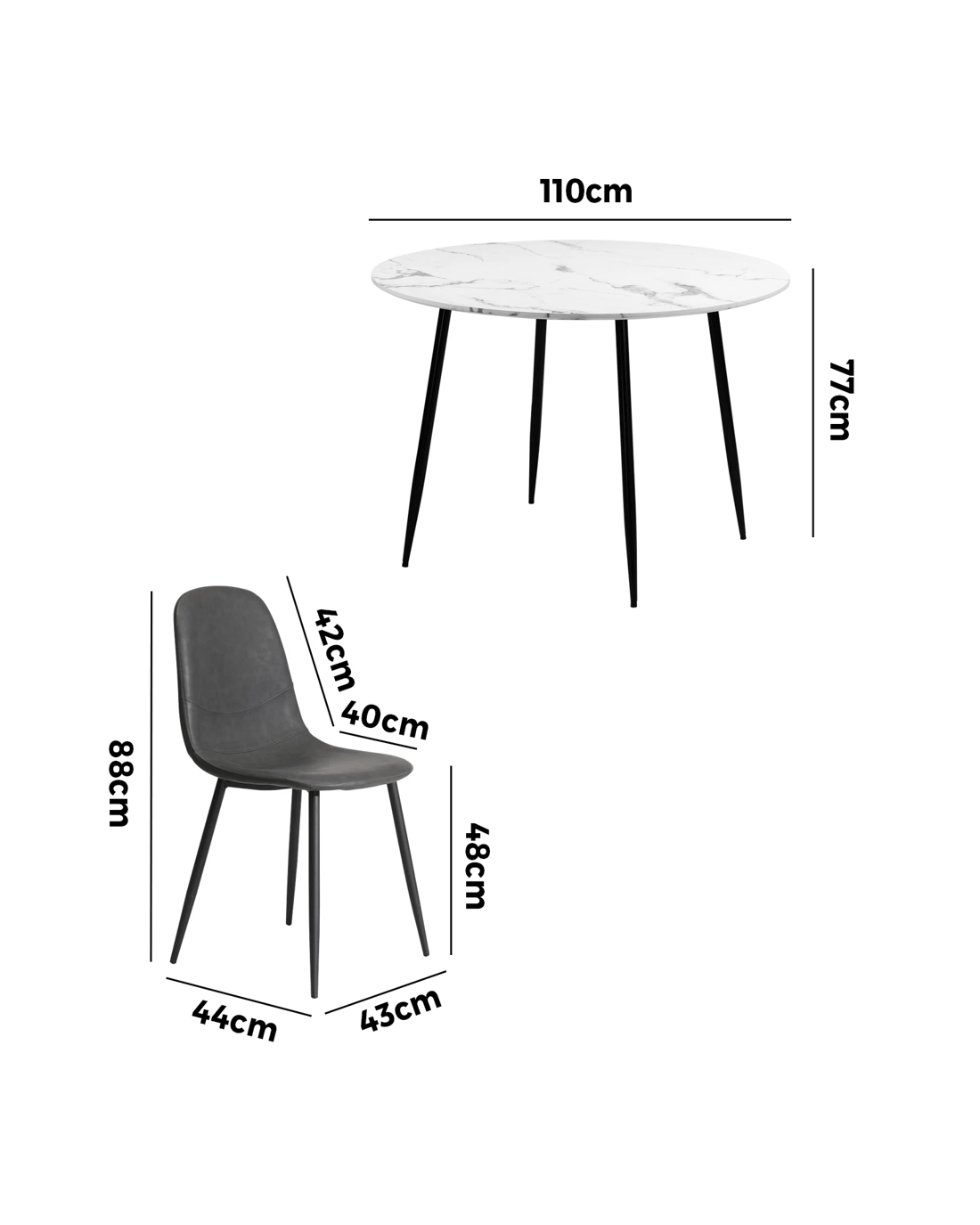 Tabletop diameter: 110cm