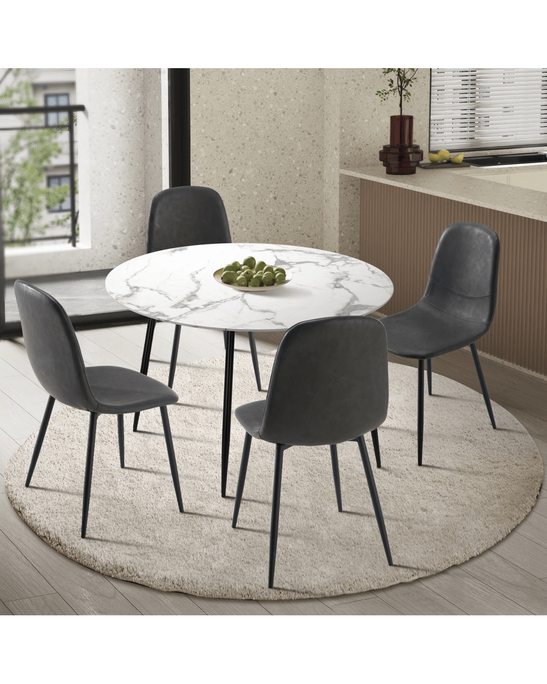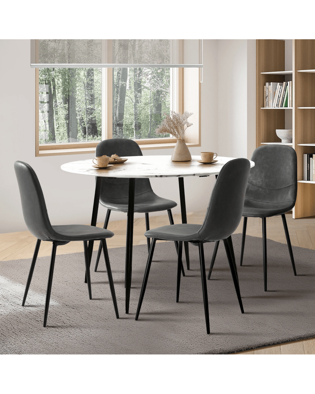 Experience the cohesive aesthetics of this set, where the synergy between the dining table and Premium PU Leather Dining Chairs creates a curated and refined look for your dining space. Meticulously selected materials and finishes ensure that every element complements the other, enhancing the overall appeal of your home.