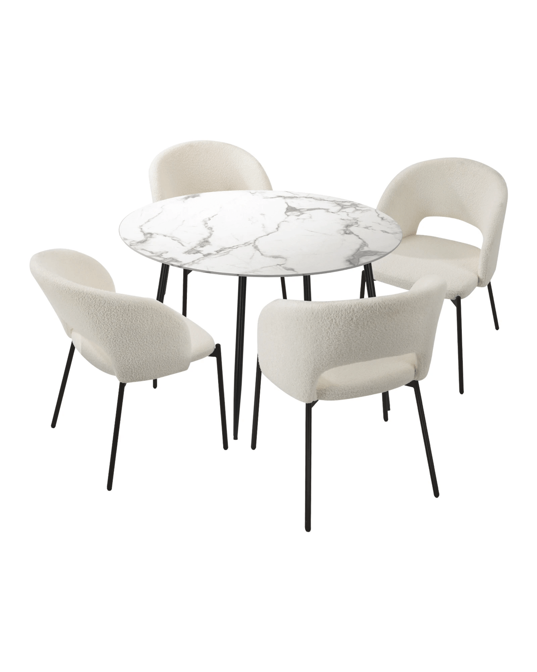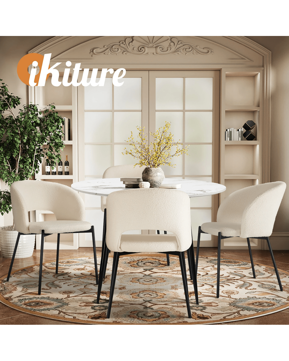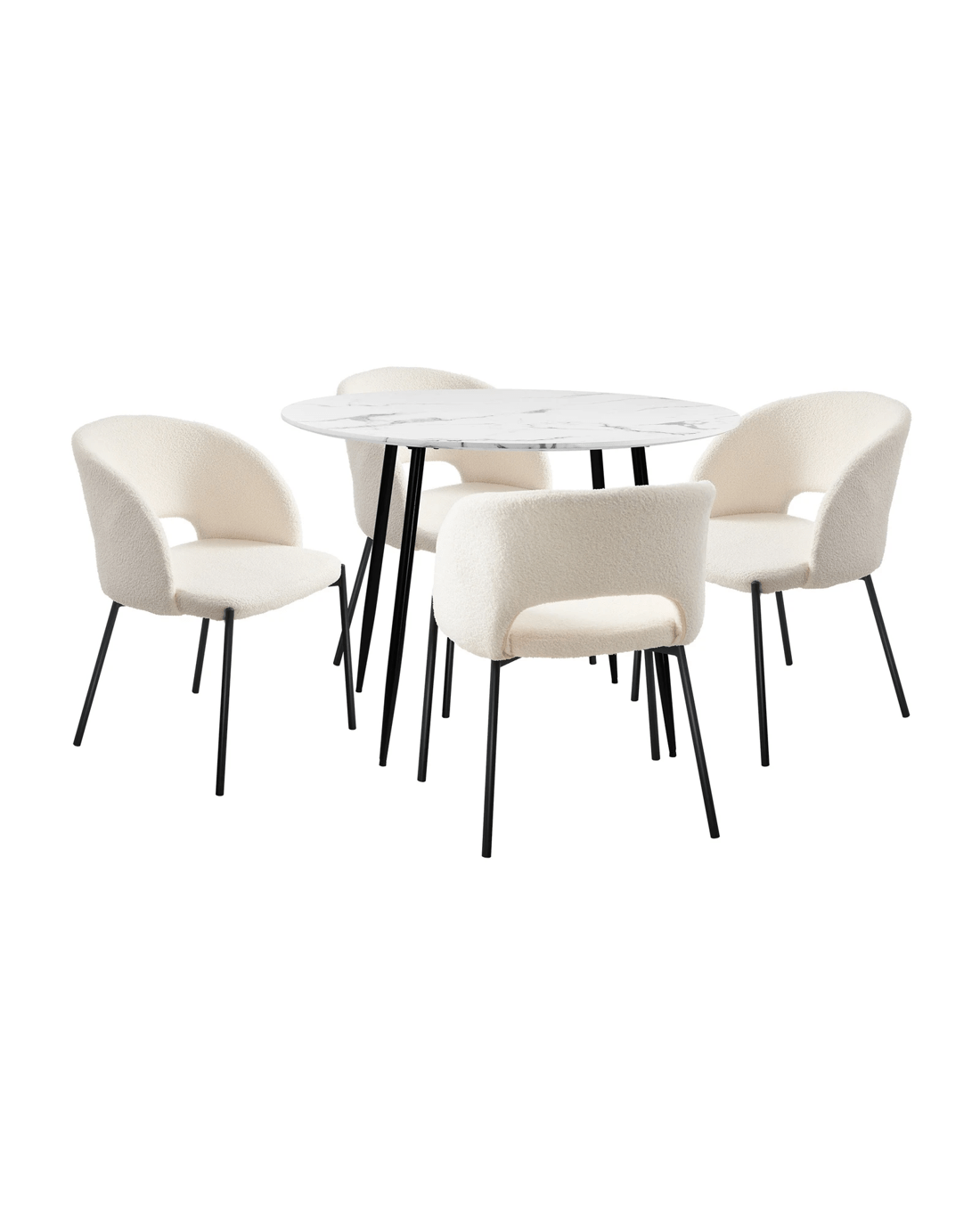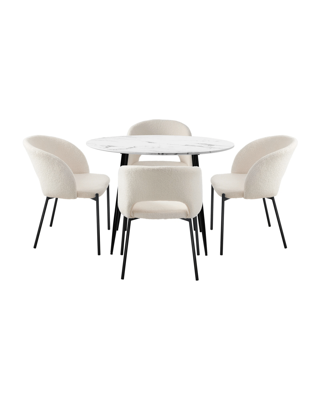Immerse yourself in the epitome of modern elegance with our Dining Table and Sherpa Dining Chairs Set by Oikiture. The sleek lines of the contemporary dining table set the stage for a dining experience that seamlessly blends sophistication with comfort. Paired with our sumptuous Sherpa Dining Chairs, the set becomes a statement piece that captures attention and admiration.