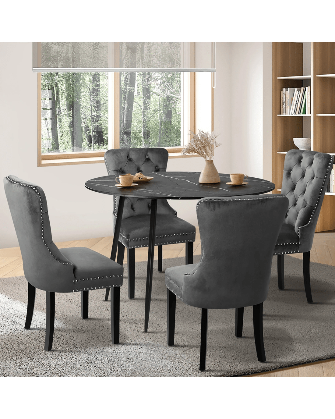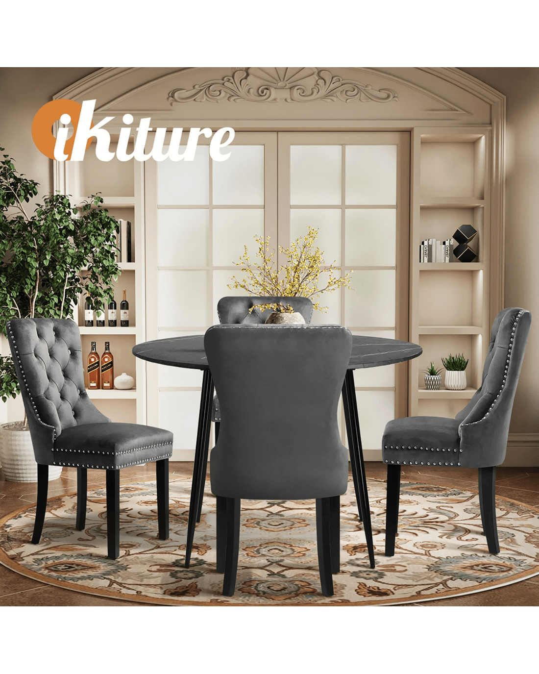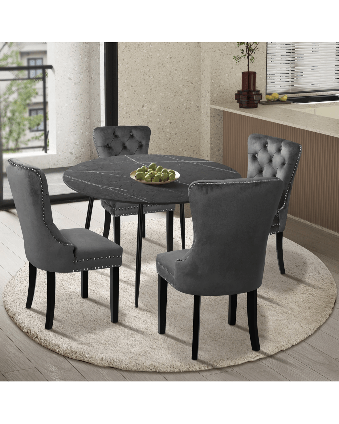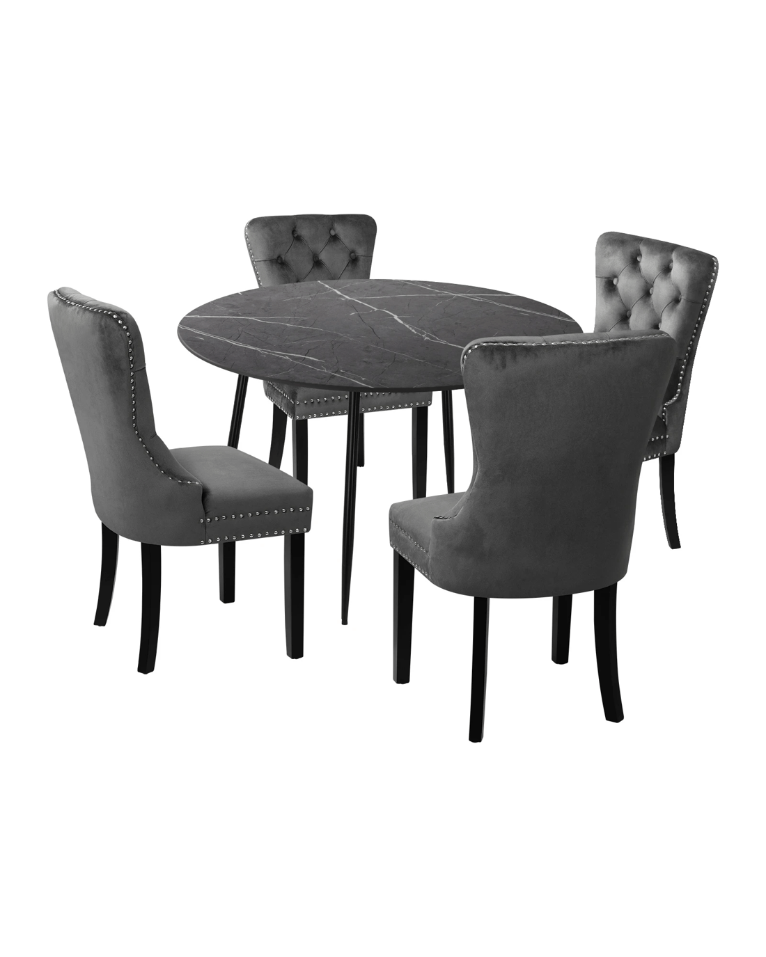 Sold by Kamprad's Oikos 1943Oikiture 110cm Round Dining Table With 4pcs Dining Chairs Velvet - Multi