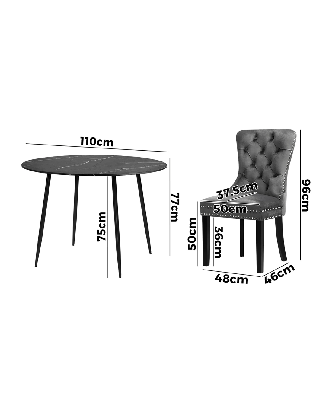 Tabletop diameter: 110cm