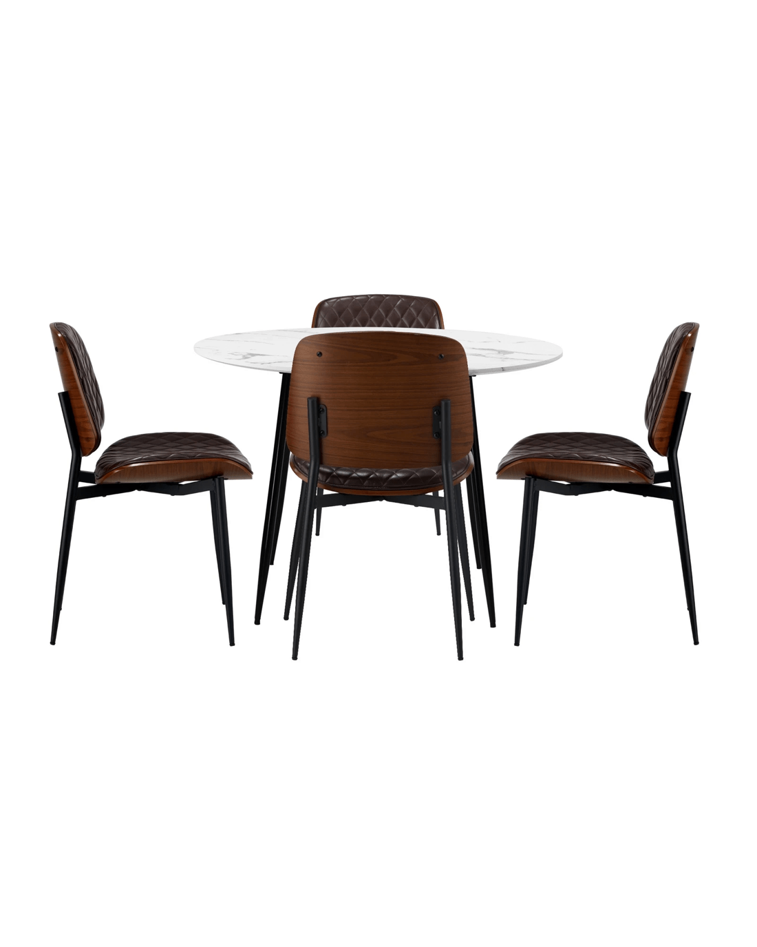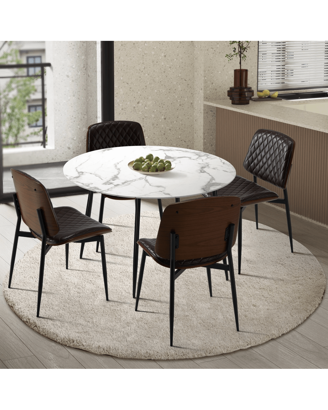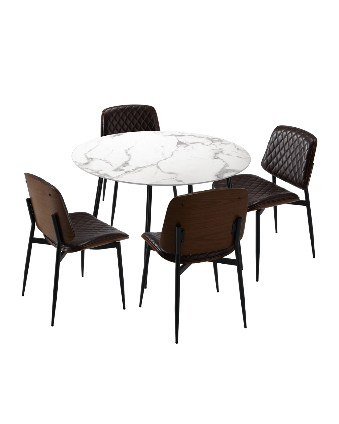 Sold by Kamprad's Oikos 1943Oikiture 110cm Round Dining Table With 4pcs Pu Dining Chairs - Multi