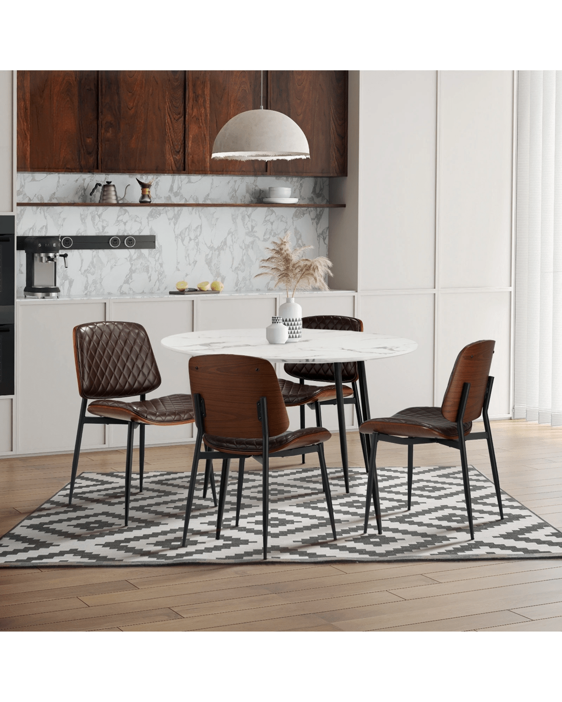 Experience the cohesive aesthetics of this set, where the synergy between the dining table and Premium PU Leather Dining Chairs creates a curated and refined look for your dining space. Meticulously selected materials and finishes ensure that every element complements the other, enhancing the overall appeal of your home.