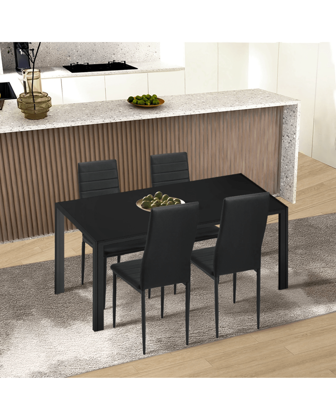 Better still, the particle board dining table comes in a choice of a plain black on black finish with a black frame and legs to suit your dining set-up preference. A 120cm long table is just perfect for small families. It is the ideal size for cozy meals together.