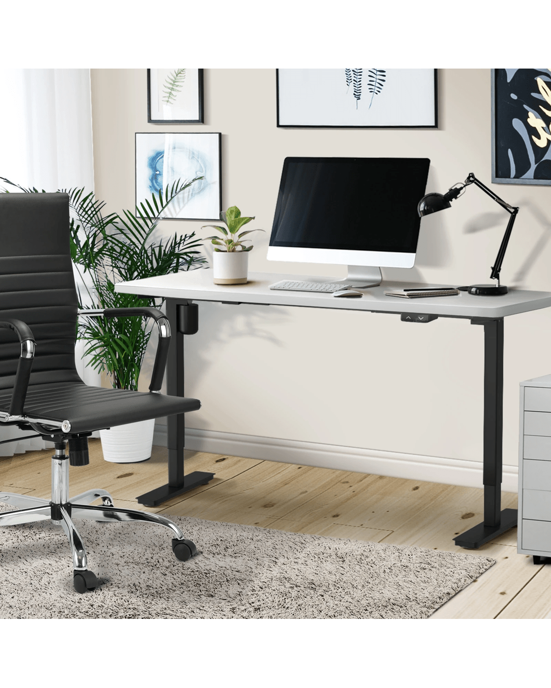 Tested and certified, our standing desk frame features an all-metal construction and a powerful lifting system that works with incredible stability. No worries about equipment or stationery falling off your desk for sure. The UP and DOWN control panel is easy to use with hassle-free switching between sitting and standing at your fingertips. The control panel is also fitted with an USB port . Other standard handy add-ons include an earphone hook and adaptor holder.
