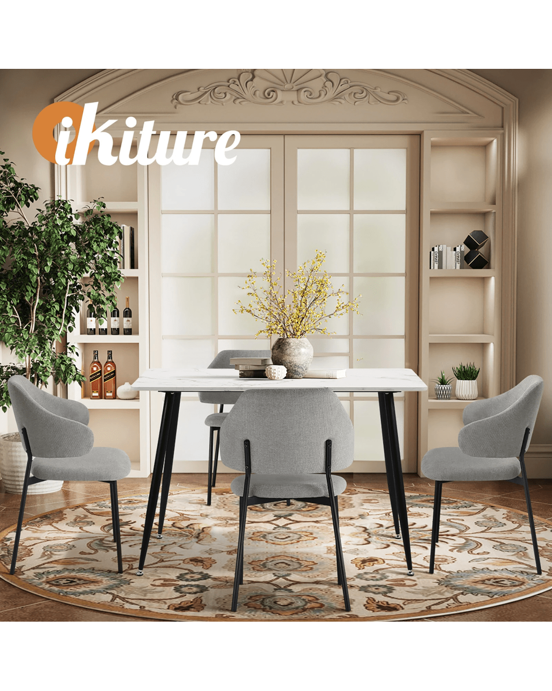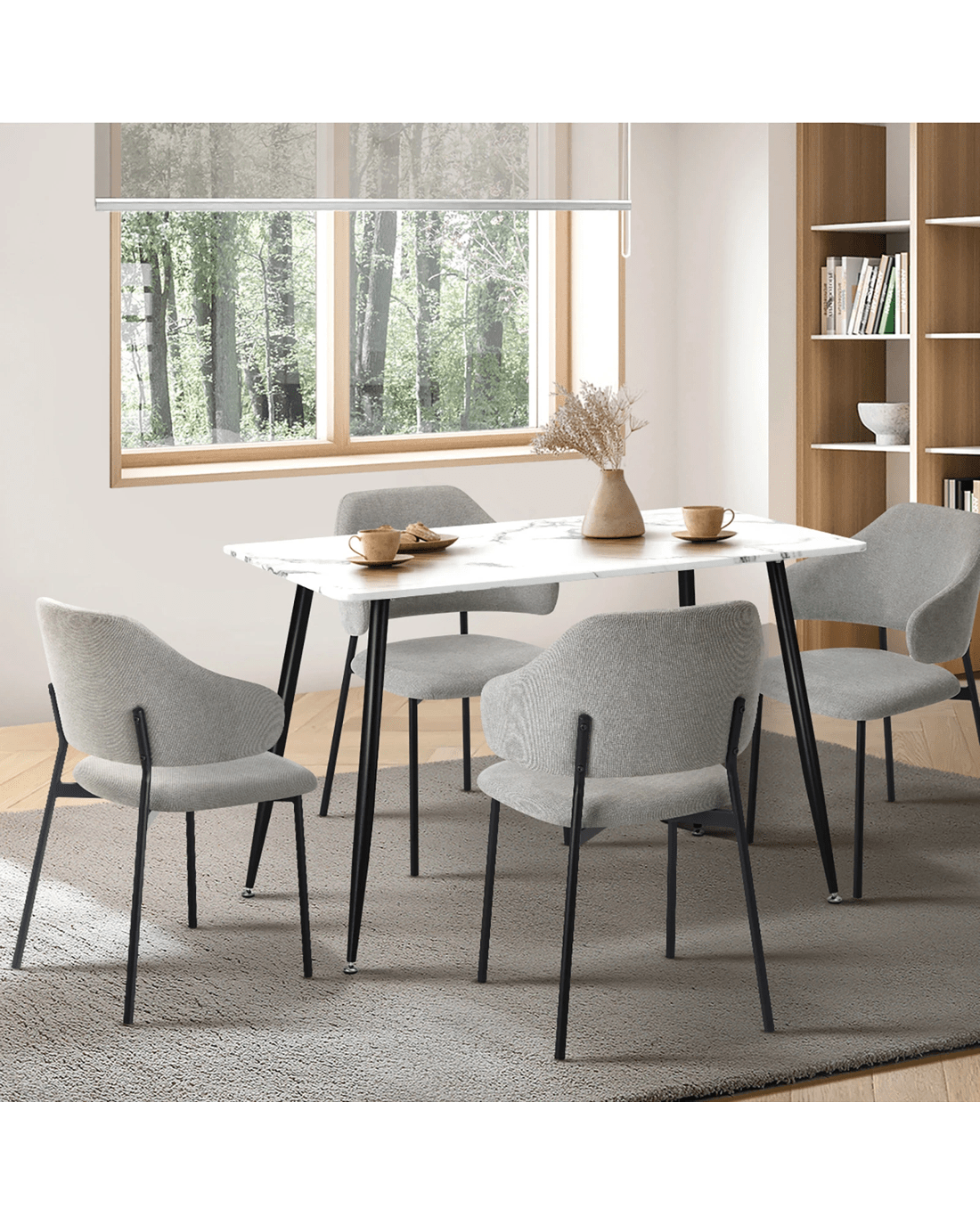 Immerse yourself in the epitome of modern elegance with our Dining Table and Fabric Dining Chairs Set by Oikiture. The sleek lines of the contemporary dining table set the stage for a dining experience that seamlessly blends sophistication with comfort. Paired with our sumptuous Fabric Dining Chairs, the set becomes a statement piece that captures attention and admiration.