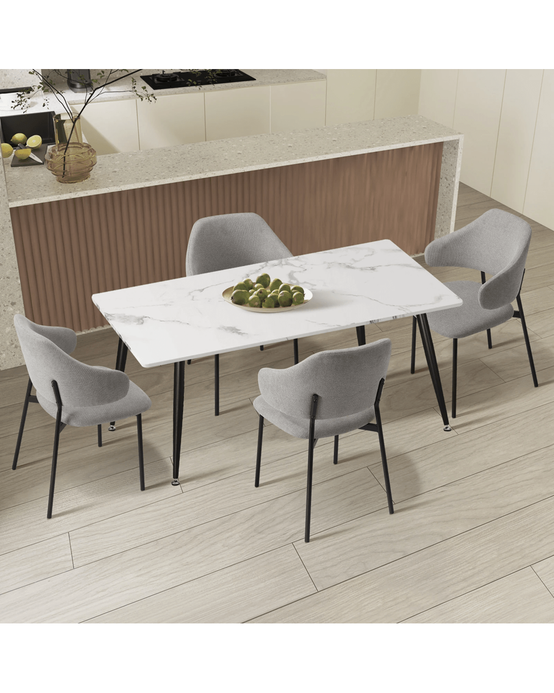 Experience the cohesive aesthetics of this set, where the synergy between the dining table and Fabric Dining Chairs creates a curated and refined look for your dining space. Meticulously selected materials and finishes ensure that every element complements the other, enhancing the overall appeal of your home.