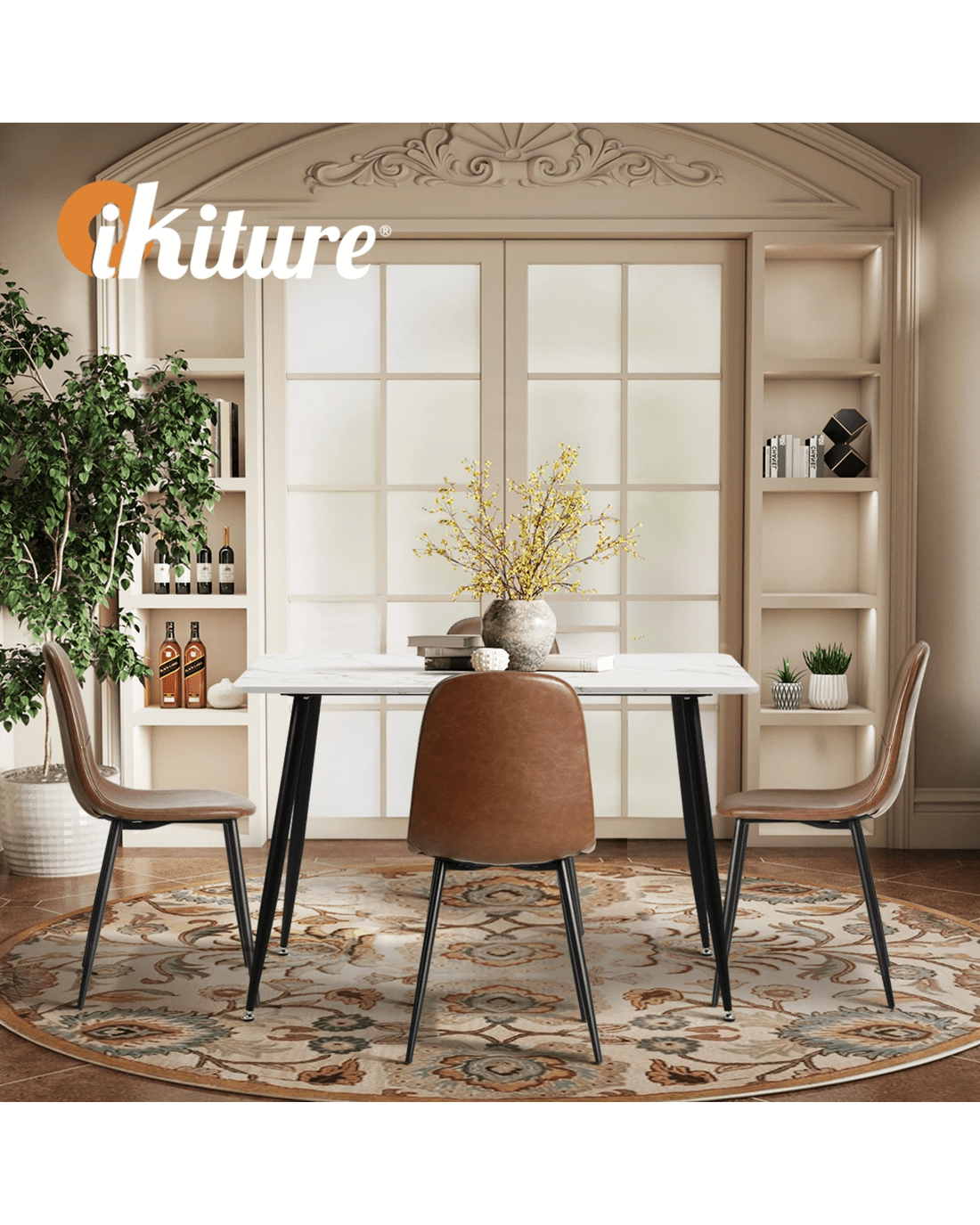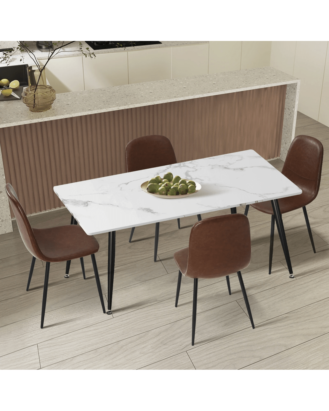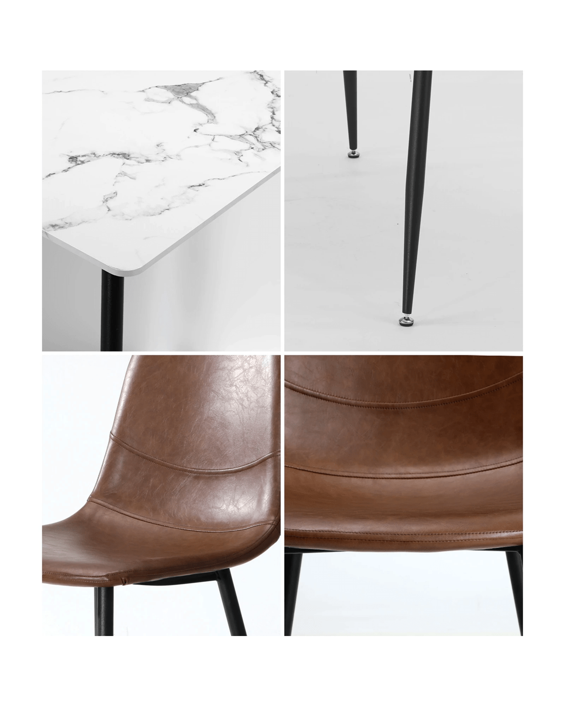 Experience the cohesive aesthetics of this set, where the synergy between the dining table and PU leather Dining Chairs creates a curated and refined look for your dining space. Meticulously selected materials and finishes ensure that every element complements the other, enhancing the overall appeal of your home.