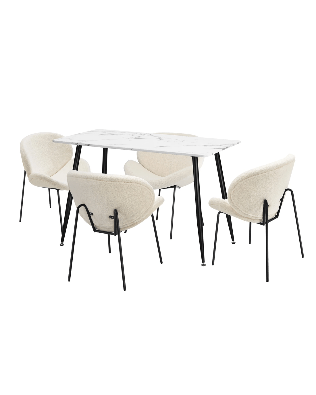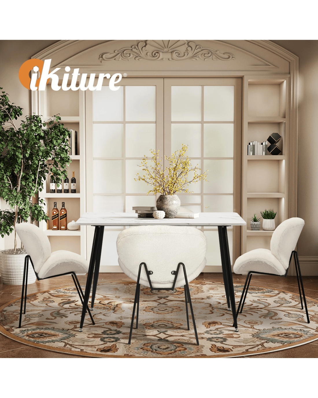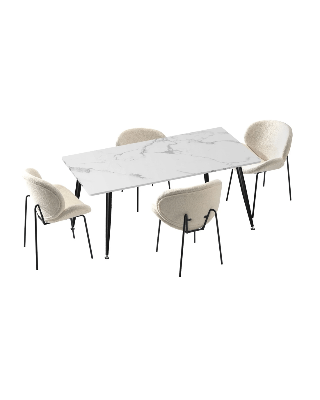 Immerse yourself in the epitome of modern elegance with our Dining Table and Sherpa Dining Chairs Set by Oikiture. The sleek lines of the contemporary dining table set the stage for a dining experience that seamlessly blends sophistication with comfort. Paired with our sumptuous Sherpa Dining Chairs, the set becomes a statement piece that captures attention and admiration.