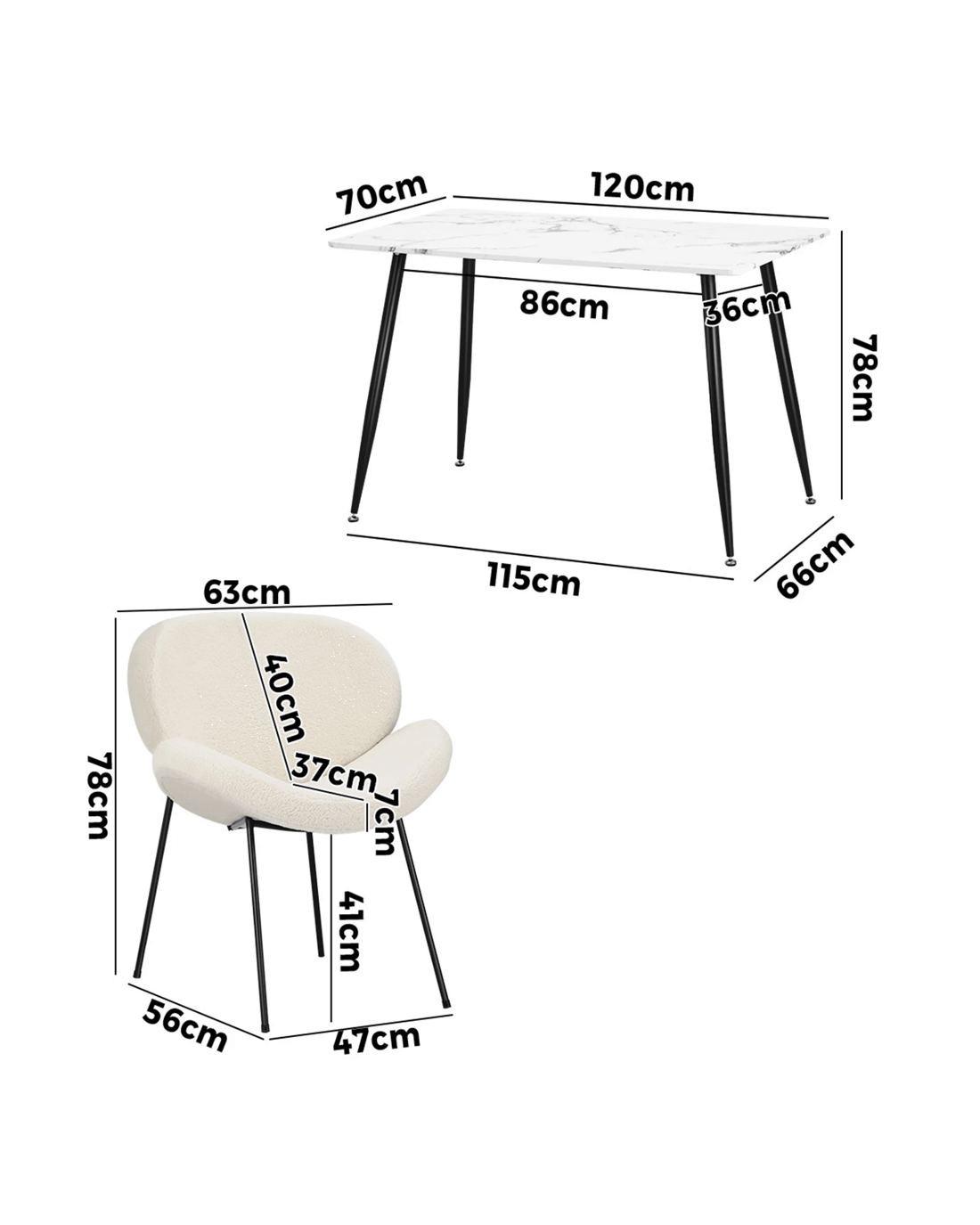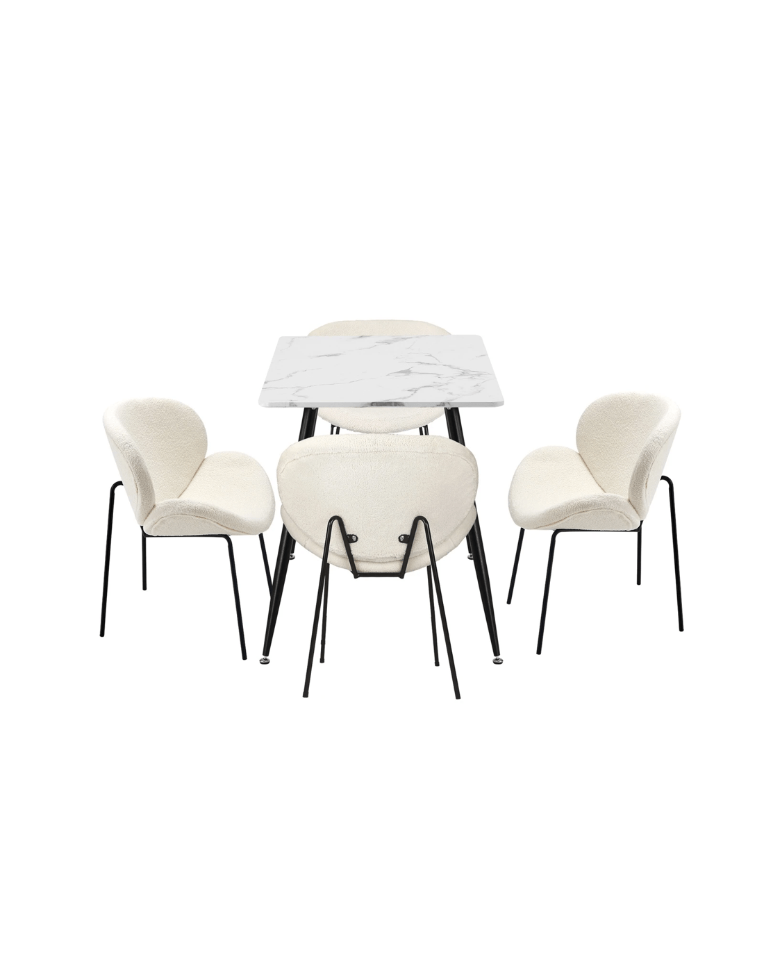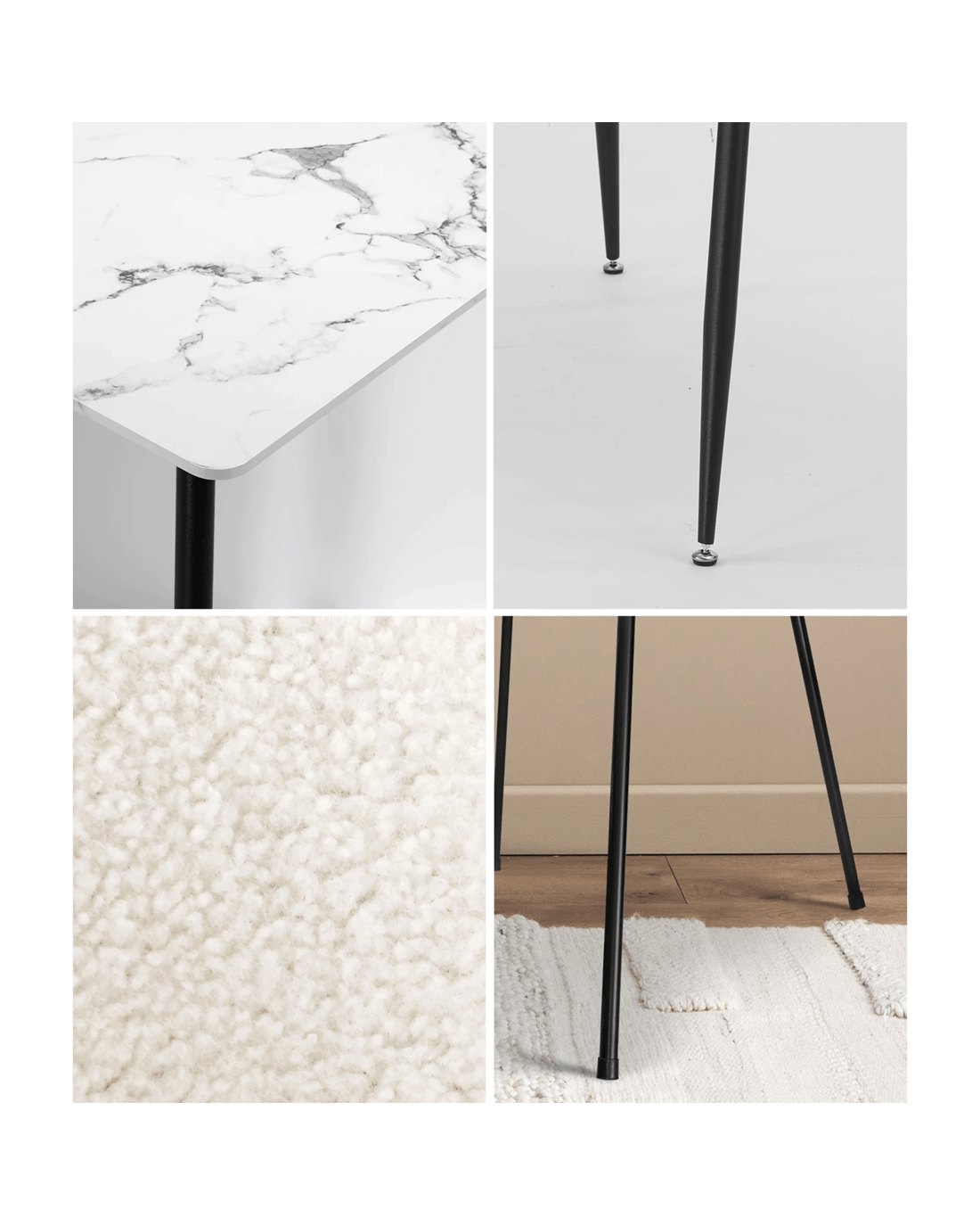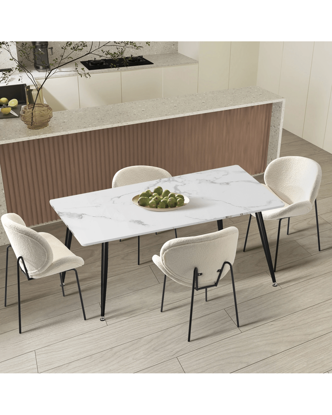 Immerse yourself in the epitome of modern elegance with our Dining Table and Sherpa Dining Chairs Set by Oikiture. The sleek lines of the contemporary dining table set the stage for a dining experience that seamlessly blends sophistication with comfort. Paired with our sumptuous Sherpa Dining Chairs, the set becomes a statement piece that captures attention and admiration.