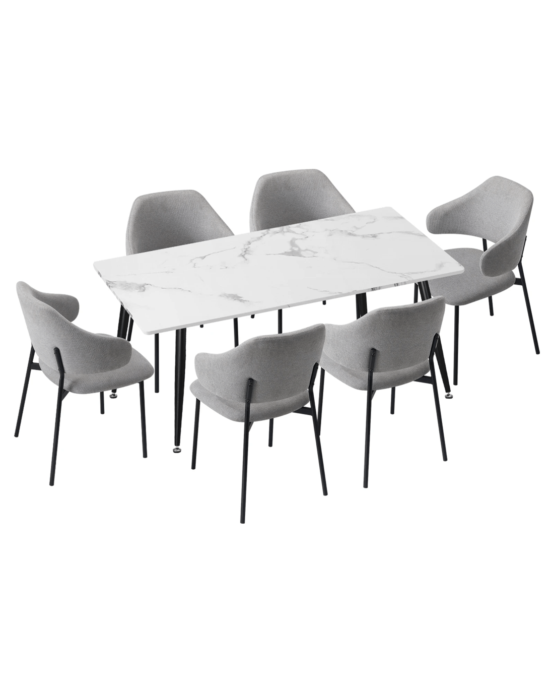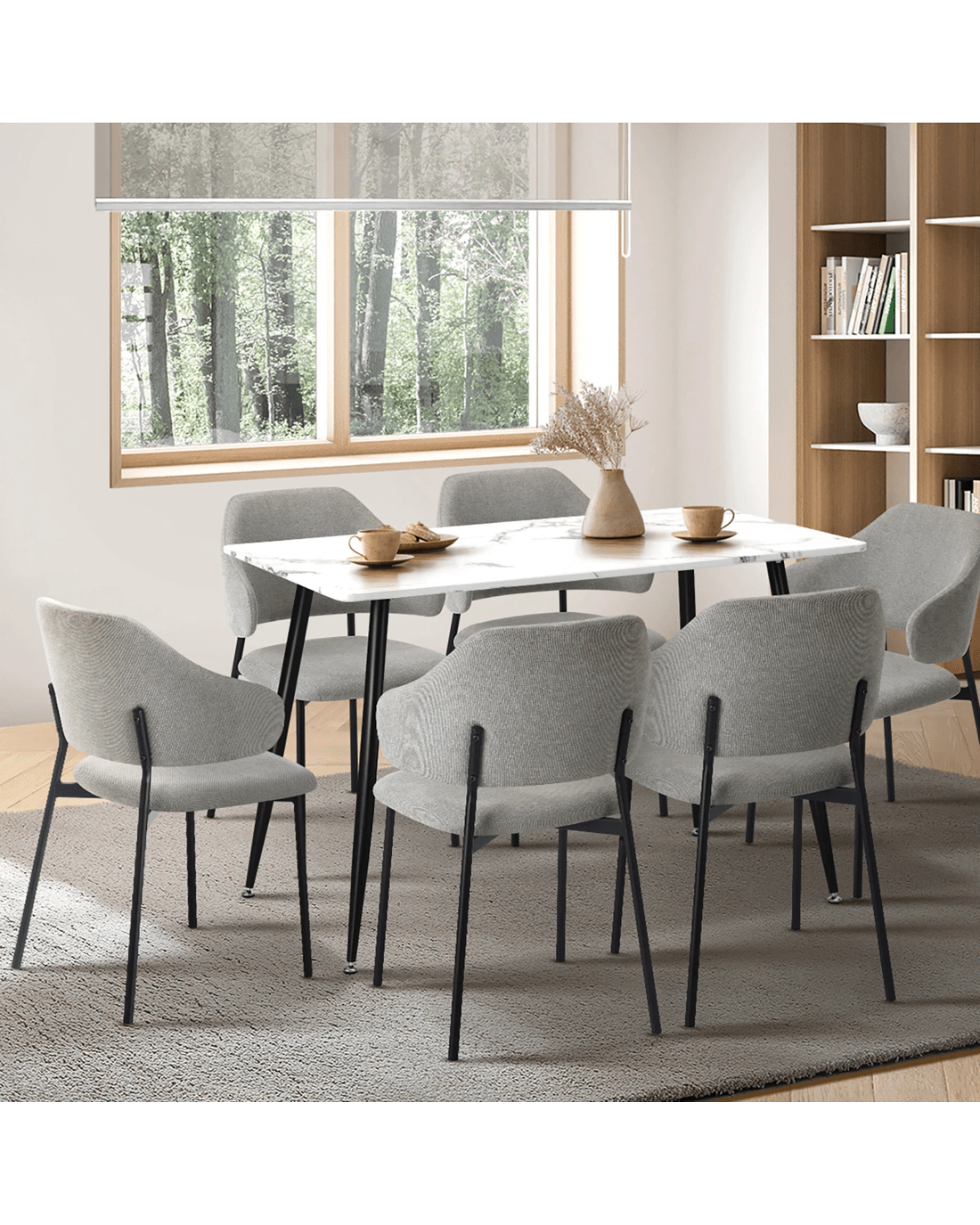 Experience the cohesive aesthetics of this set, where the synergy between the dining table and Fabric Dining Chairs creates a curated and refined look for your dining space. Meticulously selected materials and finishes ensure that every element complements the other, enhancing the overall appeal of your home.