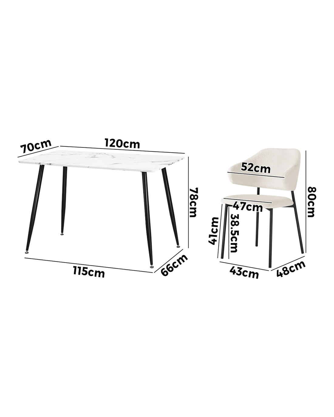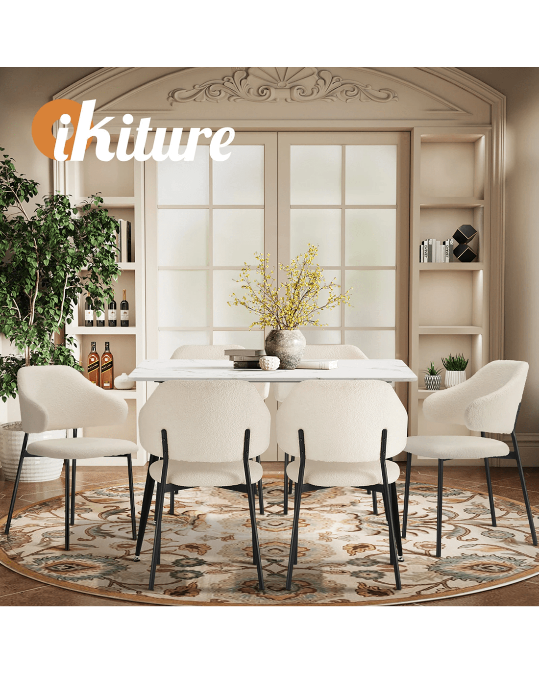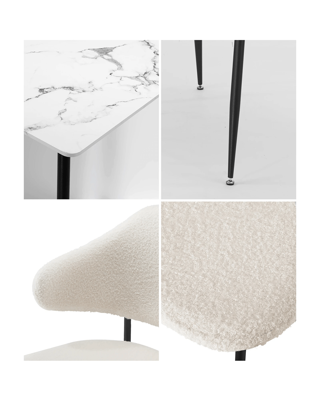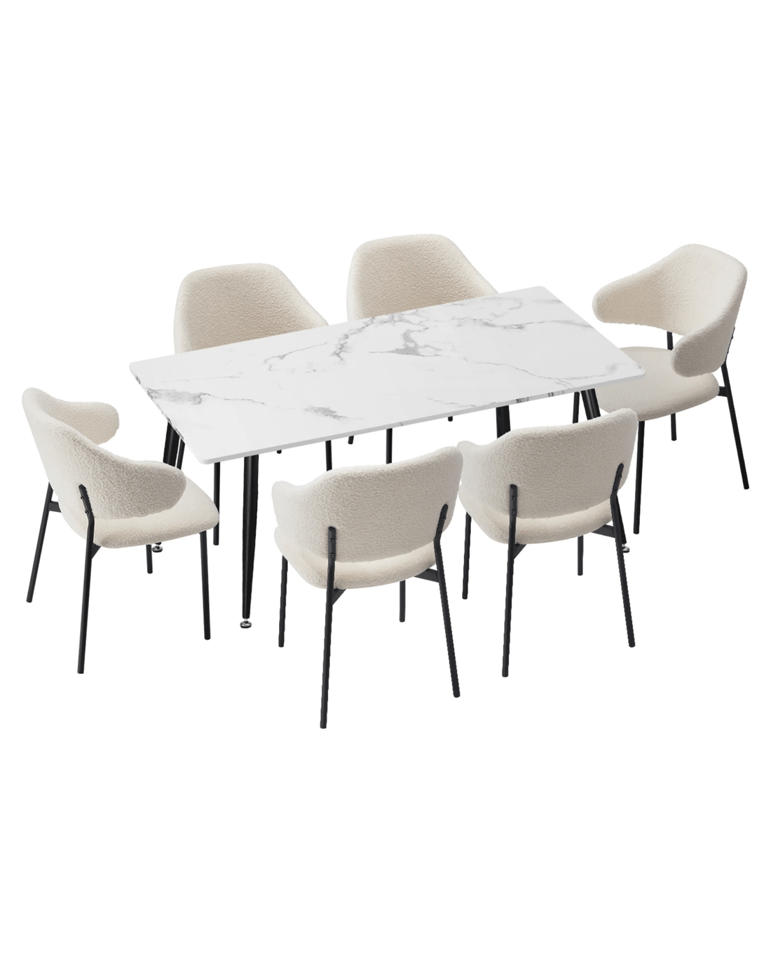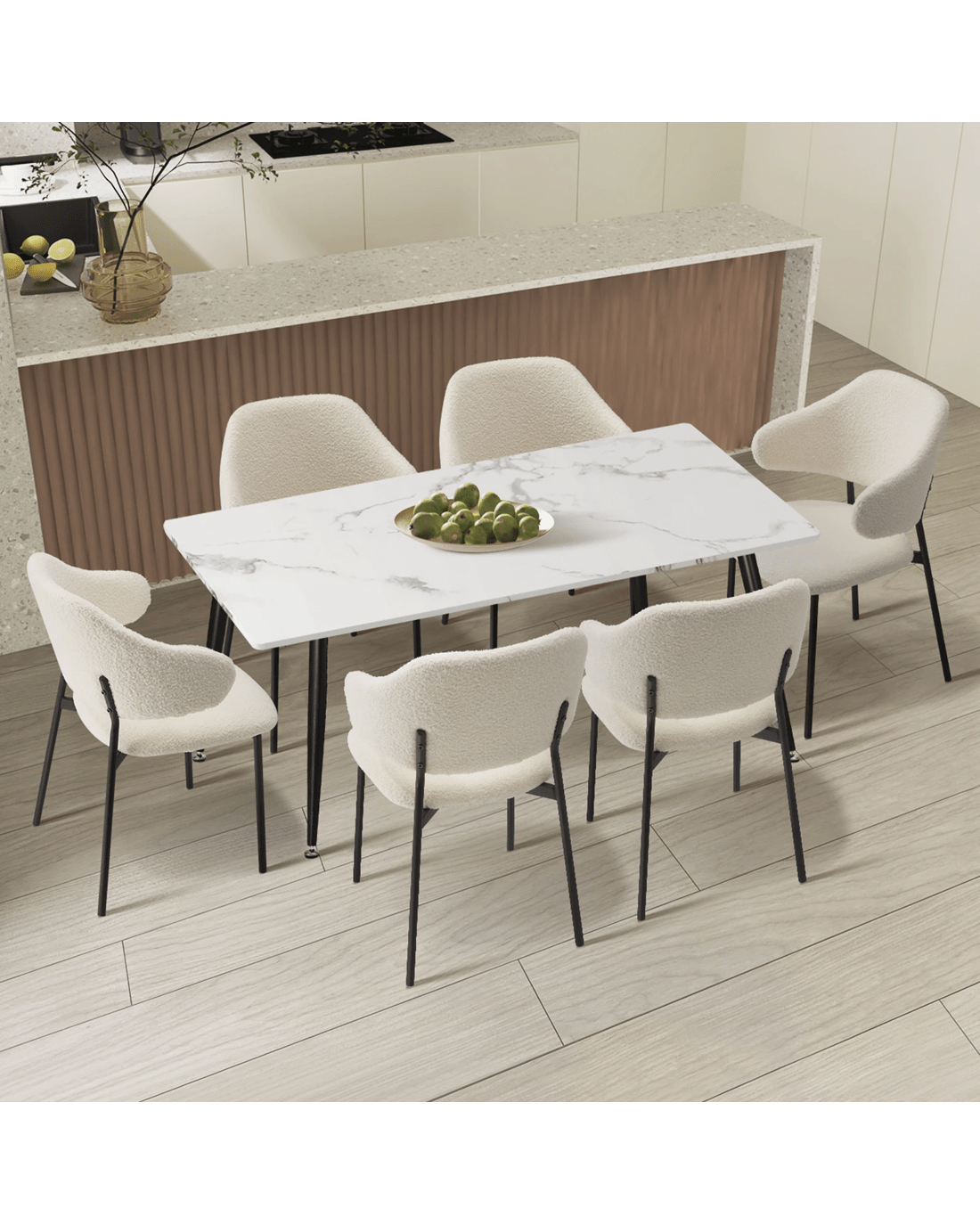 Immerse yourself in the epitome of modern elegance with our Dining Table and Sherpa Dining Chairs Set by Oikiture. The sleek lines of the contemporary dining table set the stage for a dining experience that seamlessly blends sophistication with comfort. Paired with our sumptuous Sherpa Dining Chairs, the set becomes a statement piece that captures attention and admiration.