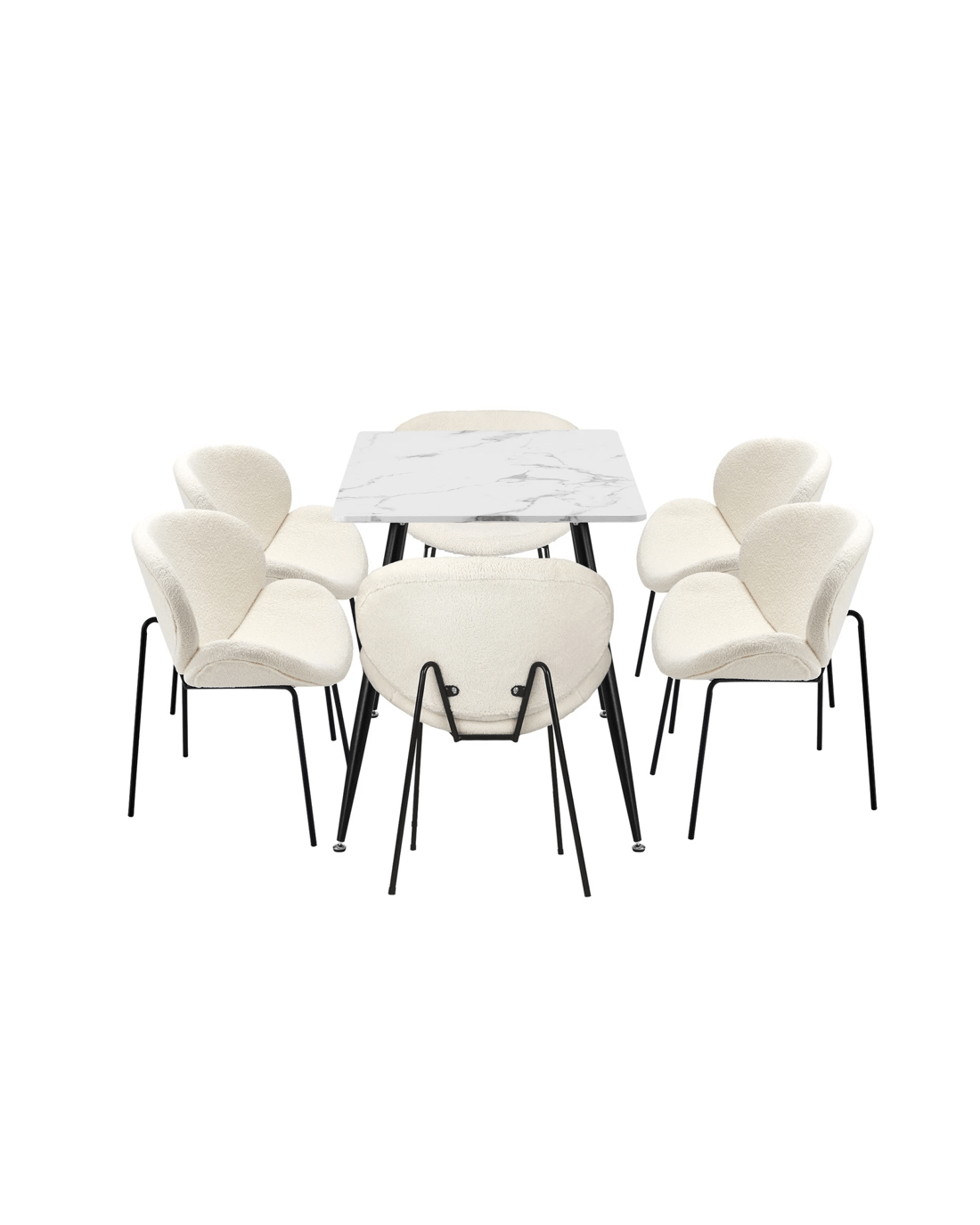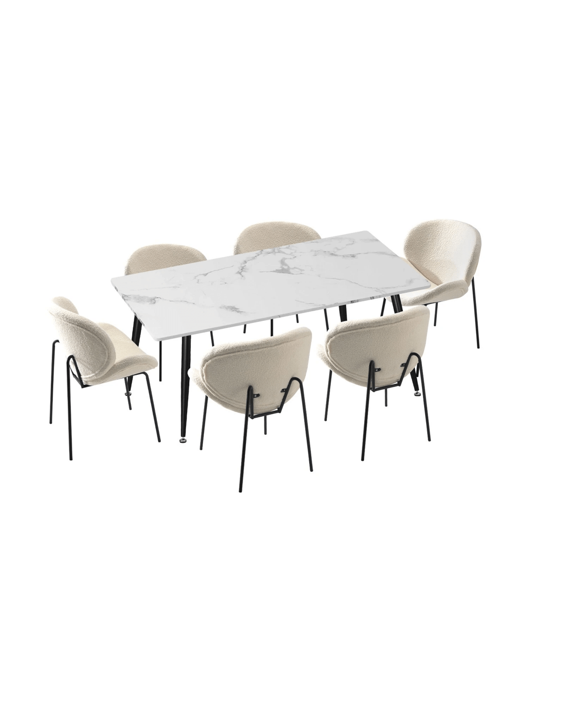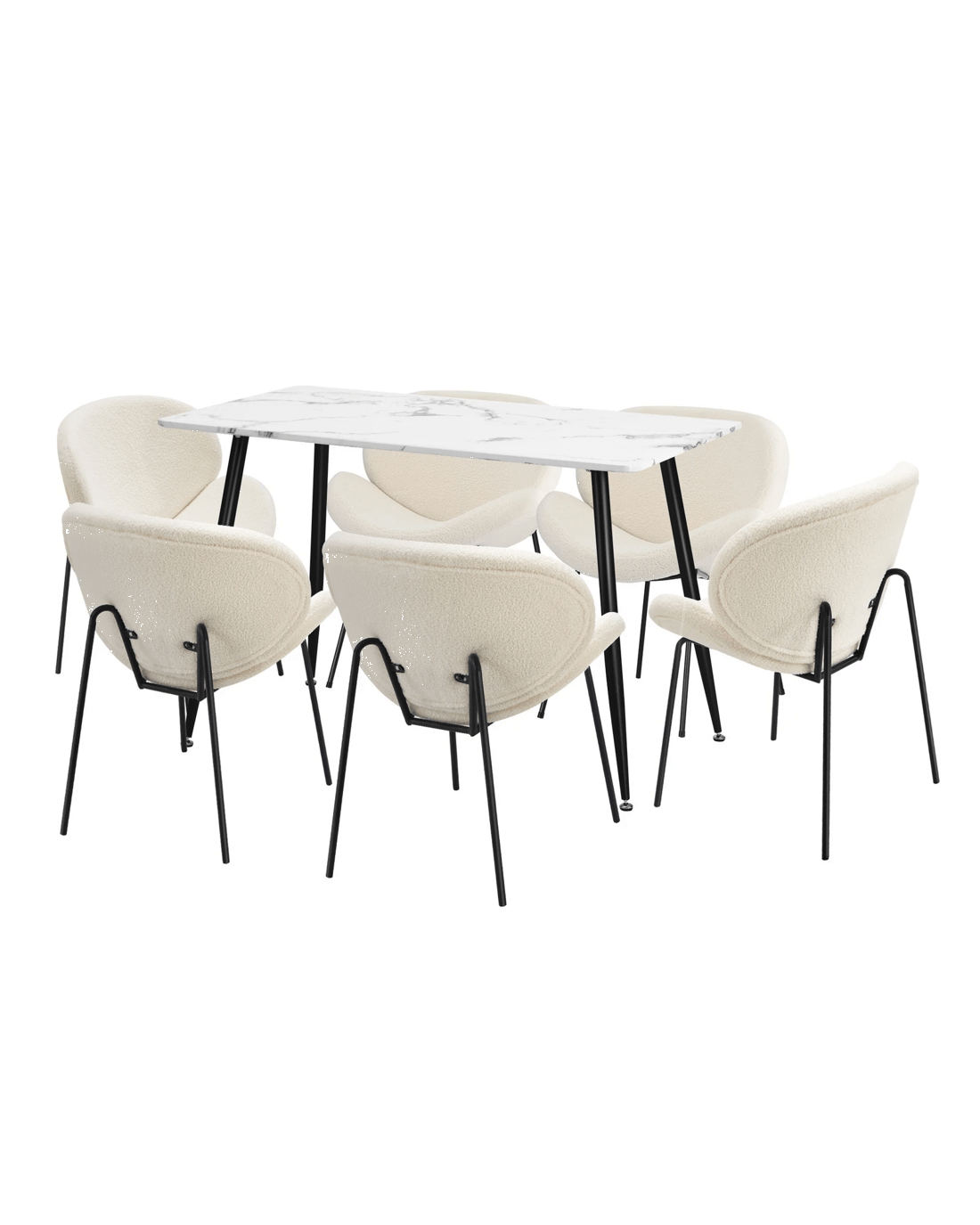 Immerse yourself in the epitome of modern elegance with our Dining Table and Sherpa Dining Chairs Set by Oikiture. The sleek lines of the contemporary dining table set the stage for a dining experience that seamlessly blends sophistication with comfort. Paired with our sumptuous Sherpa Dining Chairs, the set becomes a statement piece that captures attention and admiration.
